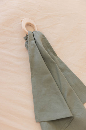 We love the simplicity of our Teether design: an elegantly carved maplewood bird, smooth and safe for your babe to chew on, and a length of soft linen to hold for comfort that snaps on and off for easy washing.