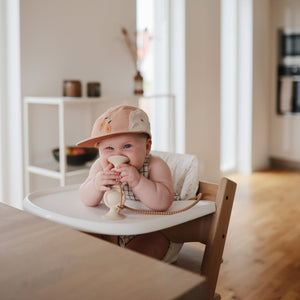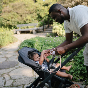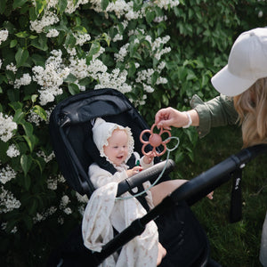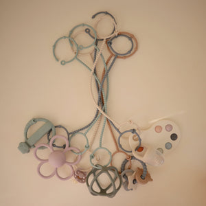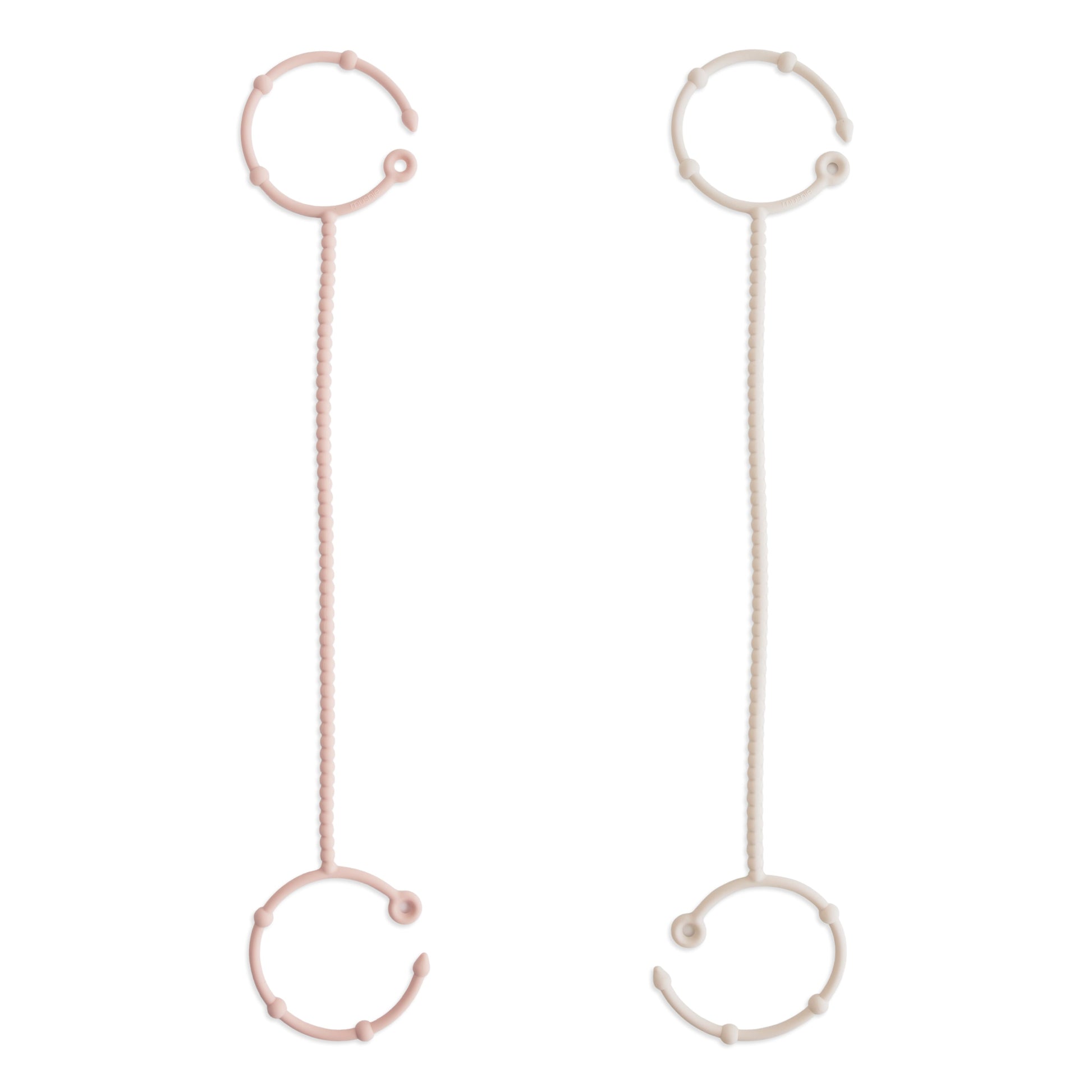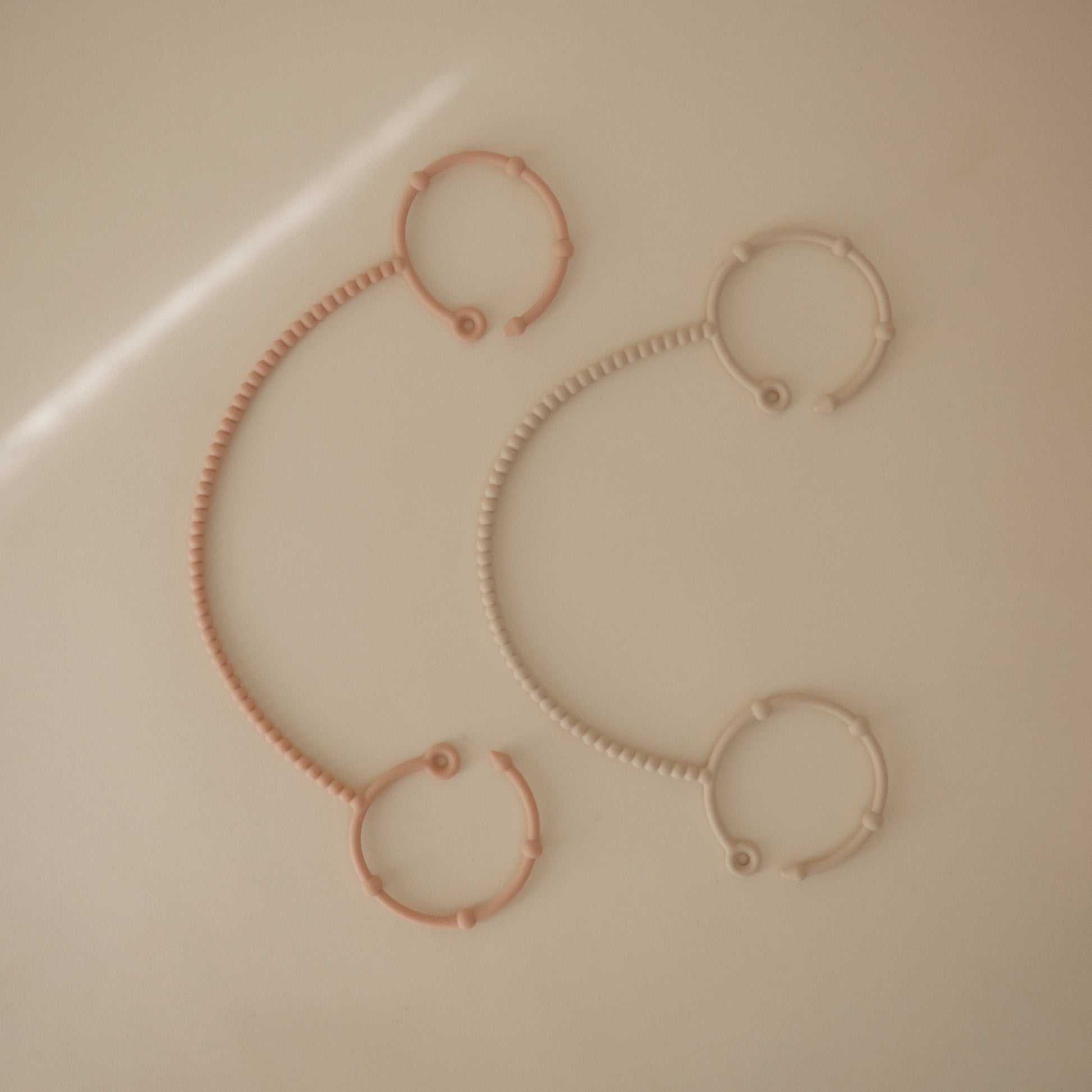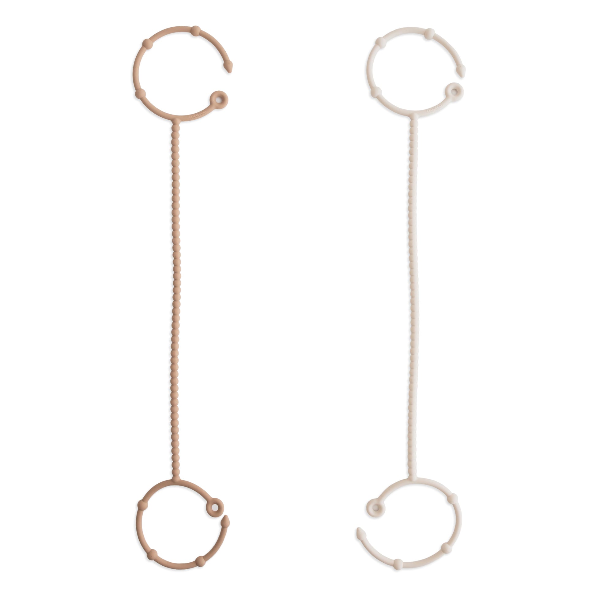 Mushie's adjustable silicone straps keep baby essentials secure so parents and littles on-the-go can enjoy more peaceful outings. Help prevent dropped toys, pacifiers, and sippy cups with these versatile straps designed to attach to strollers, high chairs, car seats, and more. An adjustable closure on each end ensures a snug fit for various items, while the durable non-toxic silicone material withstands daily wear and tear.