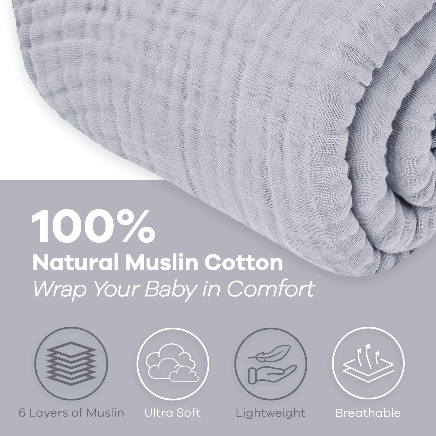 • Breathable Muslin Cotton – We use 100% Muslin cotton in our soft muslin blankets which means they’re gentler on sensitive skin and keep your body cooler throughout the night.