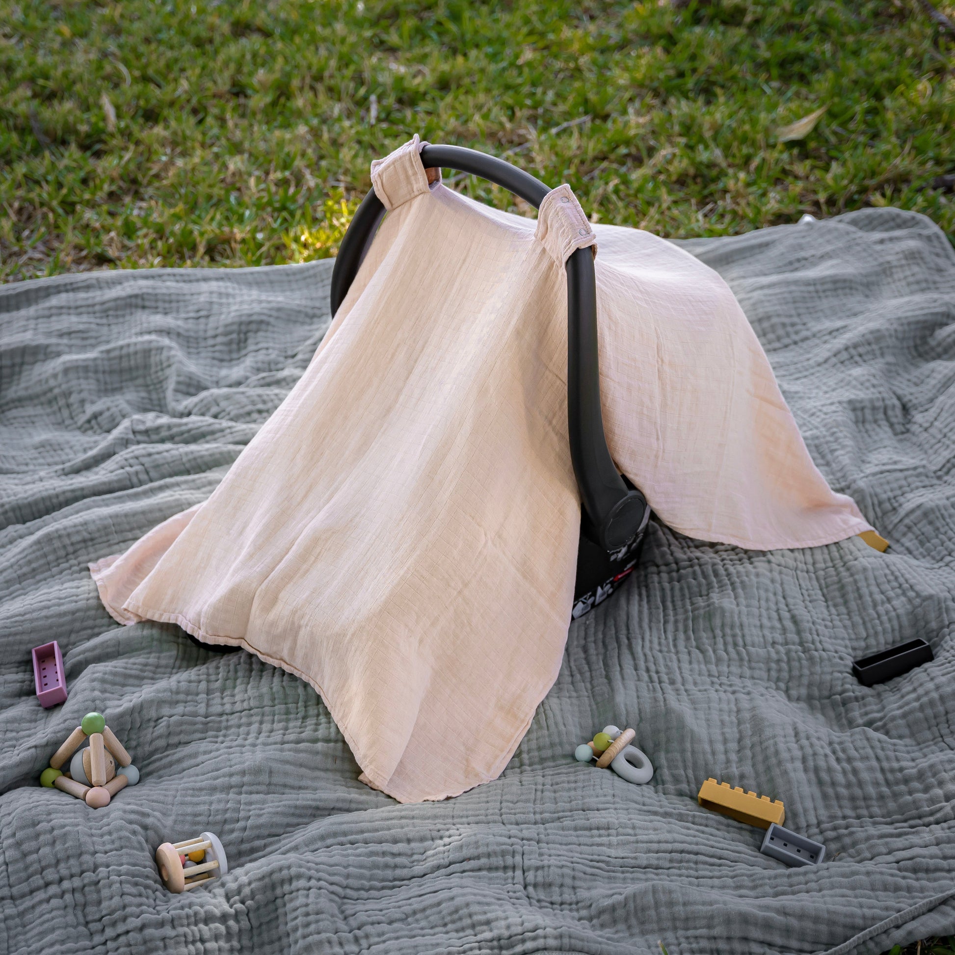 Keep your baby cozy, protected, and stylish with the Comfy Cubs car seat cover. Designed with both comfort and practicality in mind. Made from 70% bamboo rayon & 30% muslin cotton, this infant car seat canopy provides a breathable, lightweight layer of protection from harsh sunlight, bugs, and other outdoor elements, ensuring your little one stays calm and comfortable during travel.