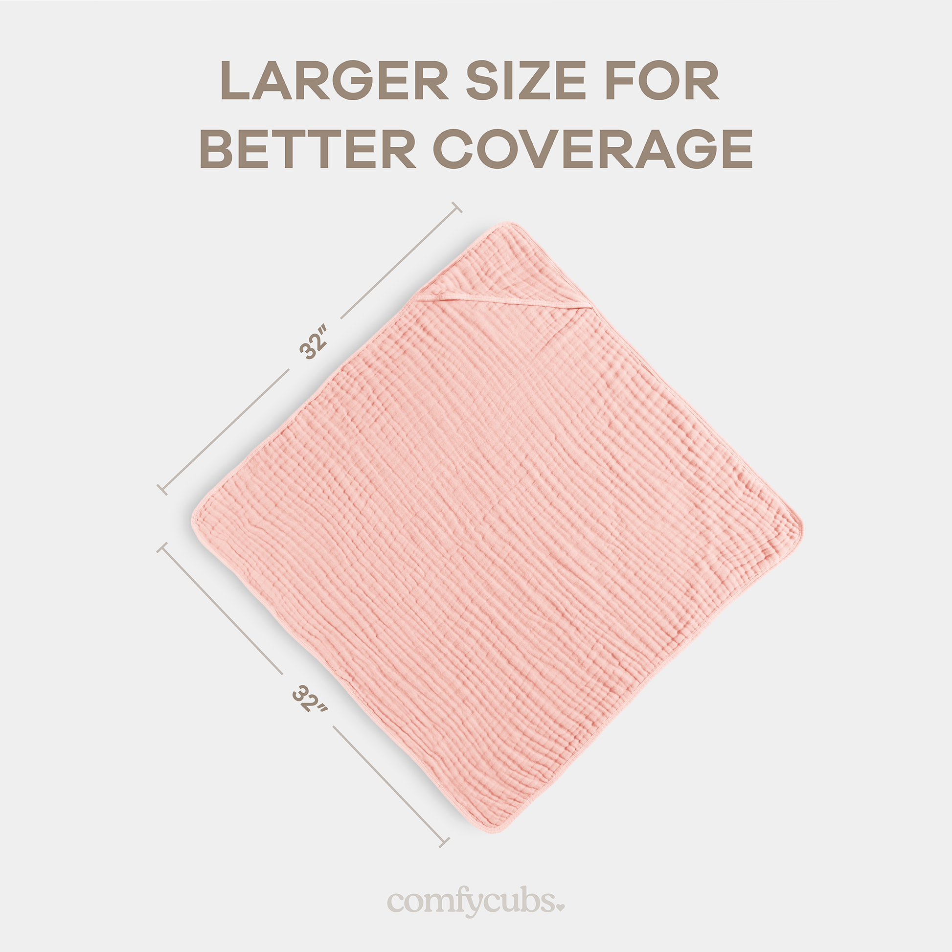 • Soft & Gentle: Made from 100% premium muslin cotton, Comfy Cubs hooded towels are designed with your baby’s delicate skin in mind. The ultra-soft fabric feels wonderfully comforting, ensuring your little one stays warm and snug after bath time.
