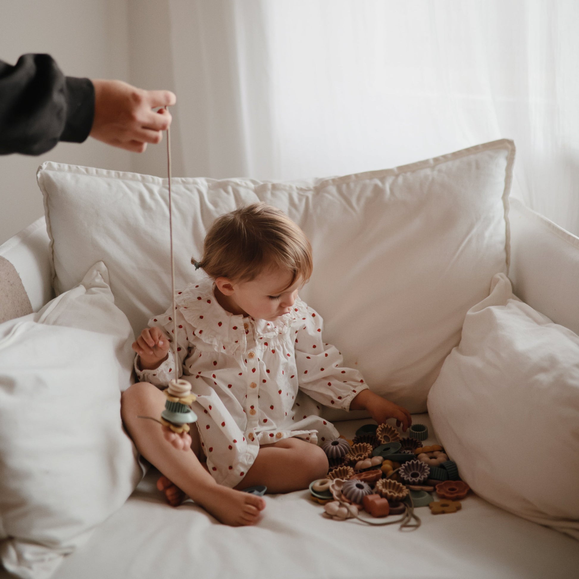 Spark creativity and fine motor skill development with our lacing bead set, thoughtfully designed for endless fun and learning. Crafted from durable, child-safe PP plastic, this set includes 54 beads in a sophisticated palette of muted colors. A timeless toy that can evolve with growing children.