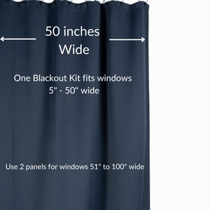 One 50" wide blackout curtain panel (Dark Midnight Blue, OEKO-TEX certified)