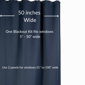 One 50" wide blackout curtain panel (Dark Midnight Blue, OEKO-TEX certified)