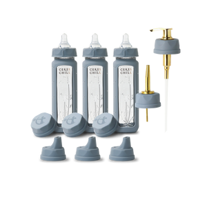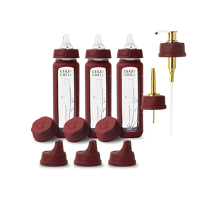 - Three glass bottles, Companion Tops, and Sip Tops in one versatile bundle