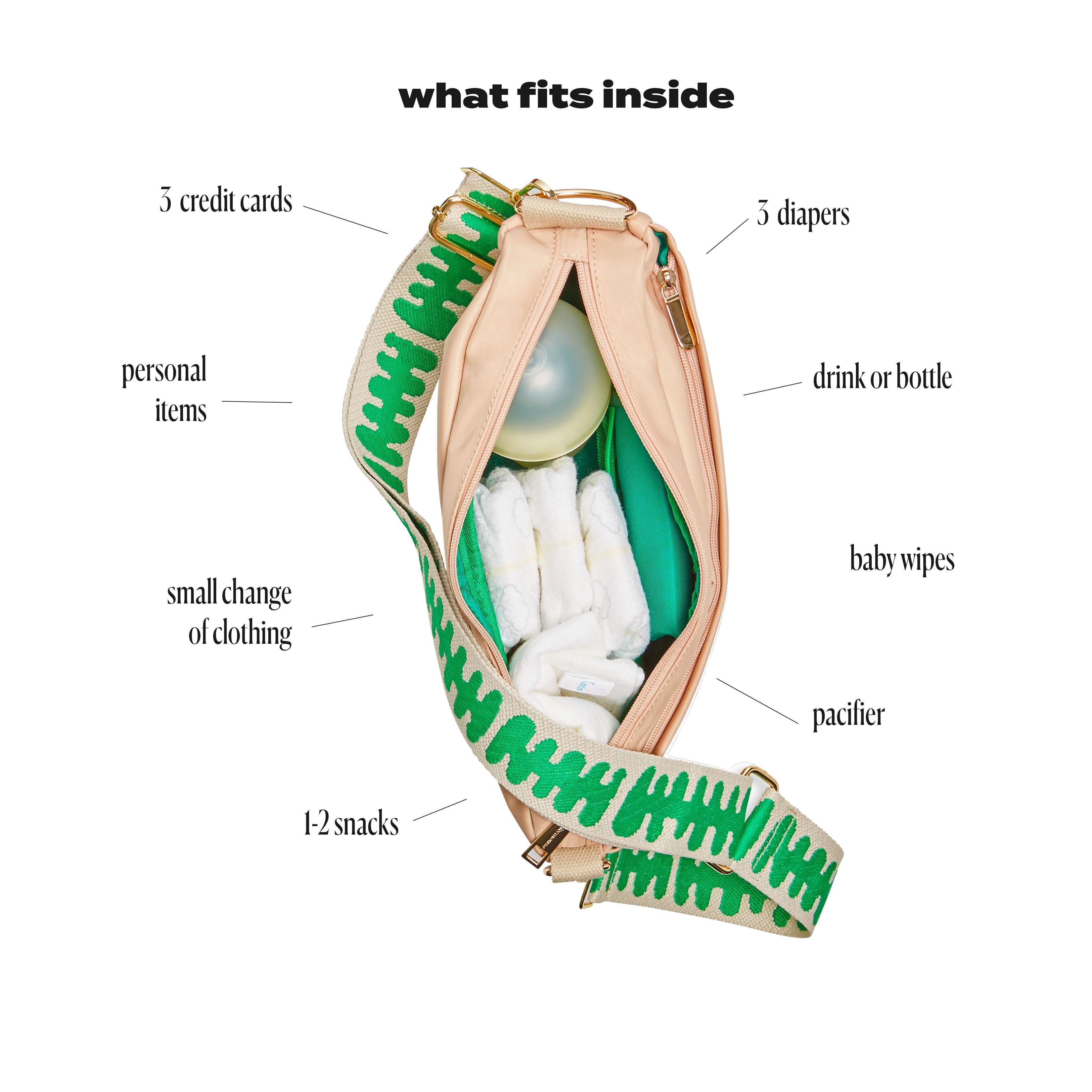 • Lightweight & compact  At just 13" L × 8" H × 3" W, it’s big enough for diapers and bottles but small enough to carry anywhere.