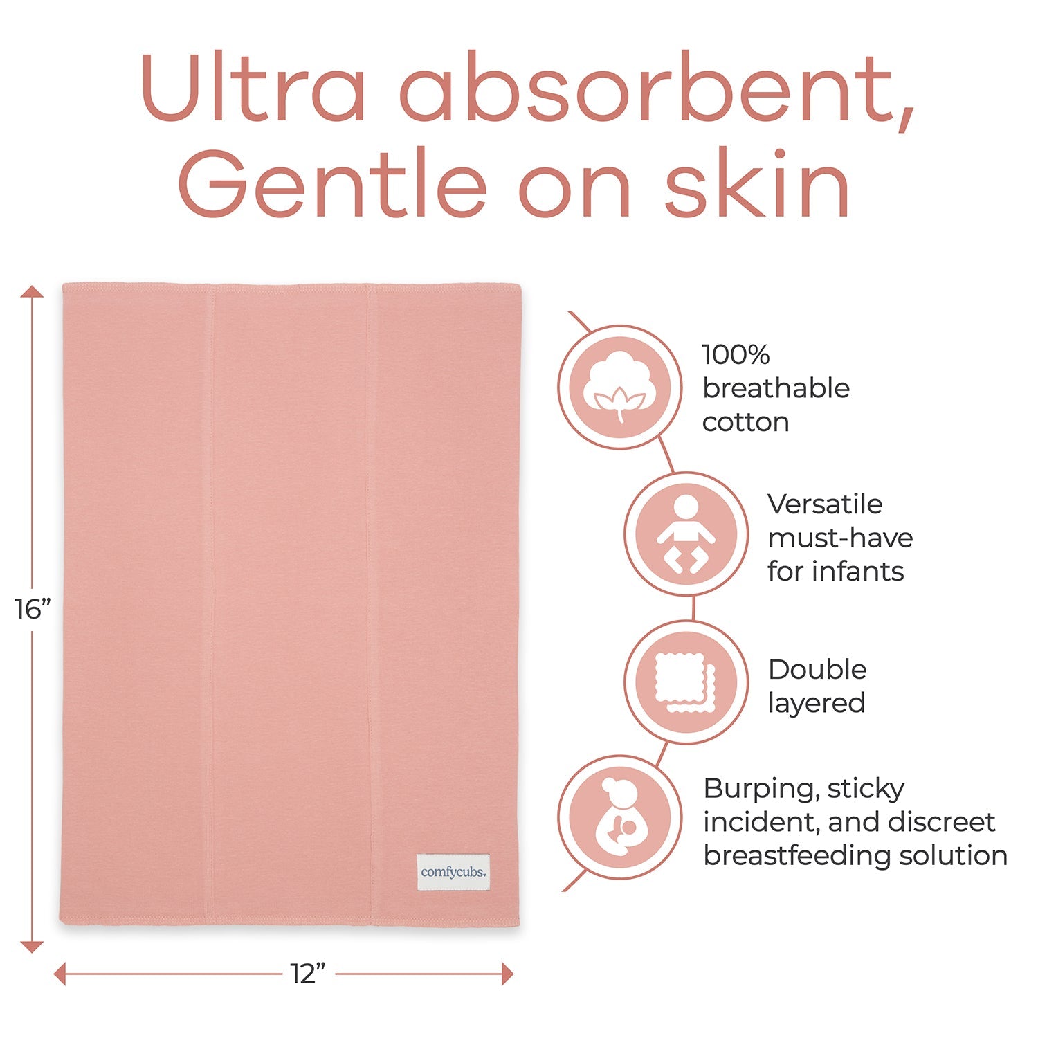 • PACK INFORMATION – each pack contains 6 x or 10x burp cloths, measuring 16" x 12" inches each. The cloths are 100% Cotton and have 2 layers of extra absorbent, soft material