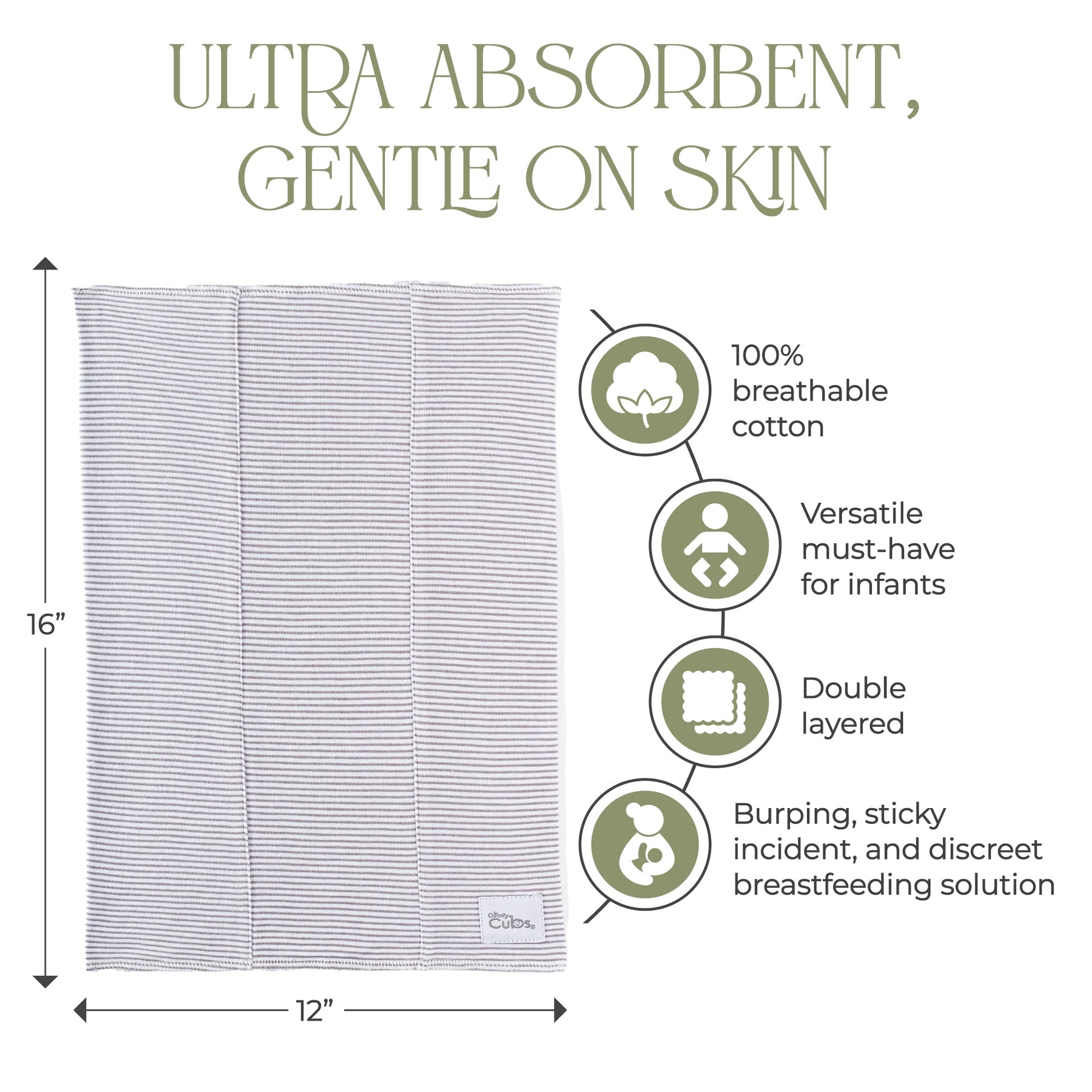 • PACK INFORMATION – each pack contains 6 x or 10x burp cloths, measuring 16" x 12" inches each. The cloths are 100% Cotton and have 2 layers of extra absorbent, soft material
