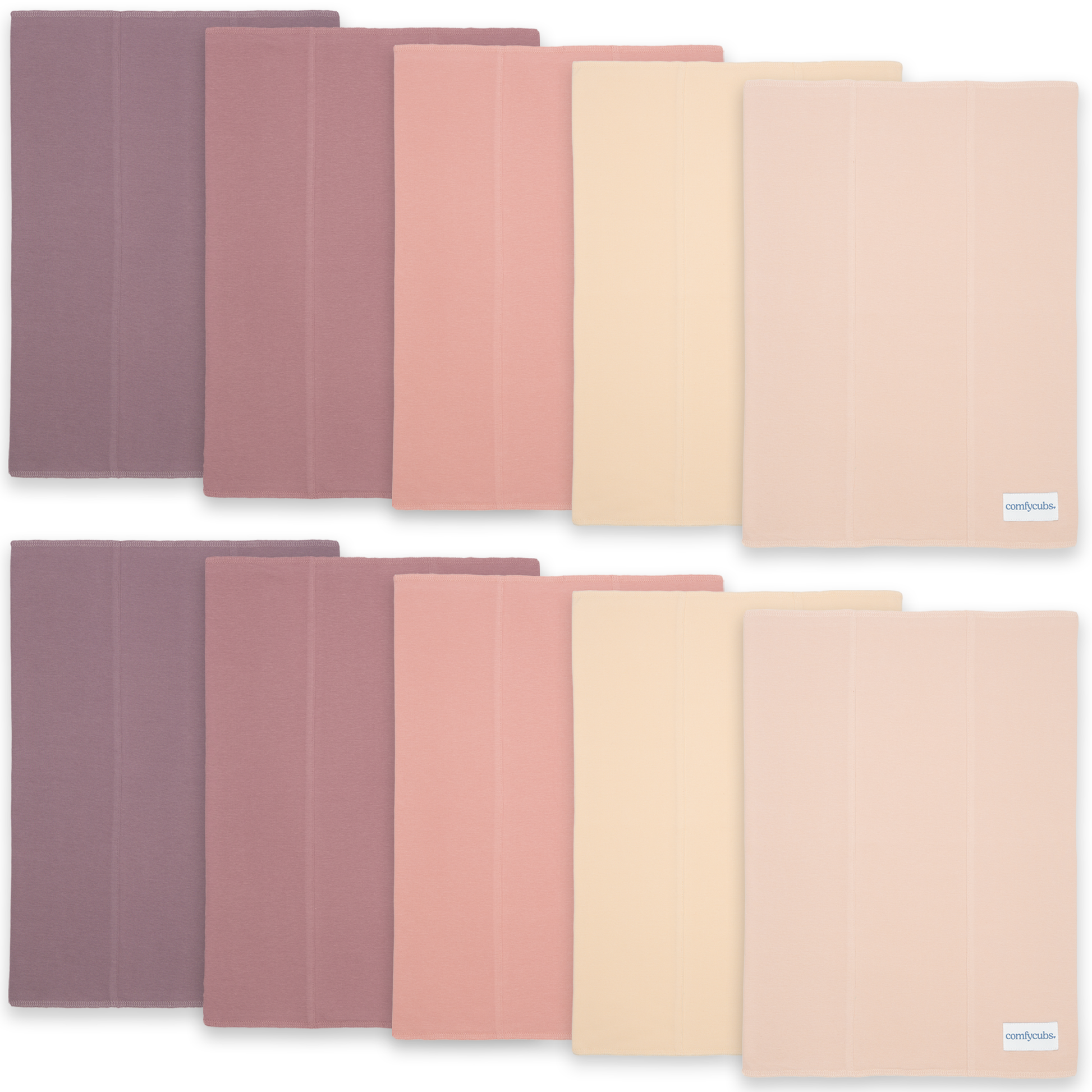 PACK INFORMATION – each pack contains 6 x or 10x burp cloths, measuring 16" x 12" inches each. The cloths are 100% Cotton and have 2 layers of extra absorbent, soft material