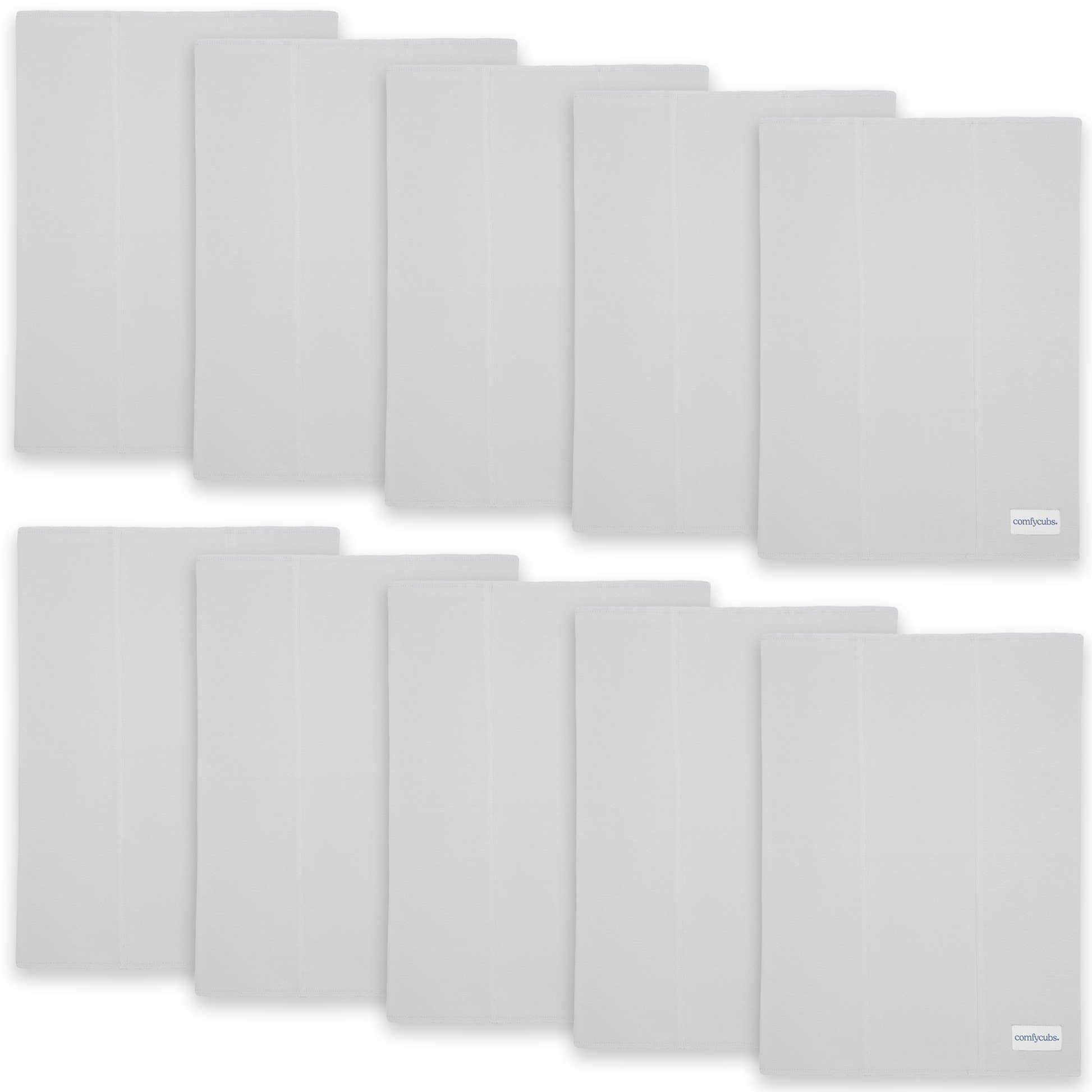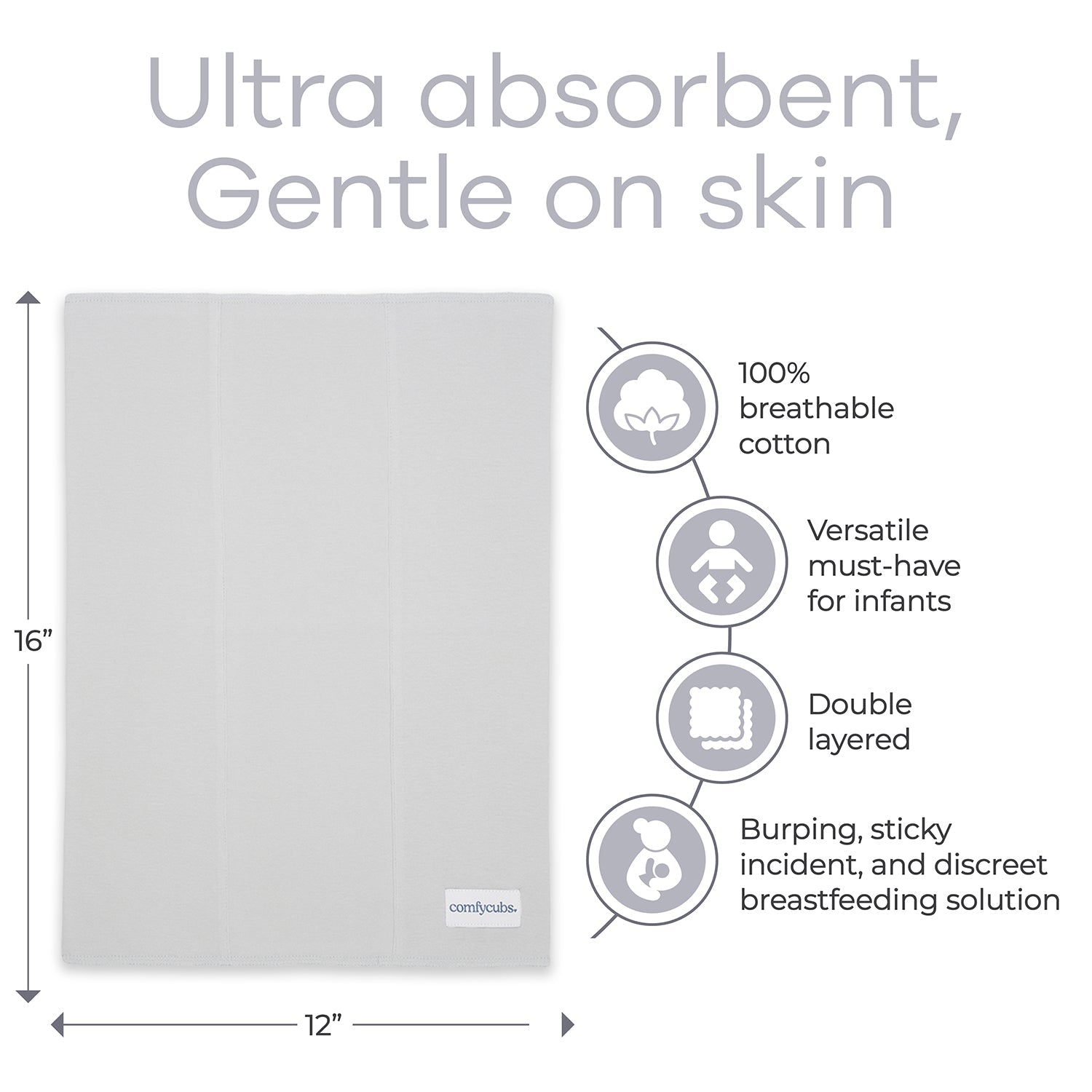 • PACK INFORMATION – each pack contains 6 x or 10x burp cloths, measuring 16" x 12" inches each. The cloths are 100% Cotton and have 2 layers of extra absorbent, soft material
