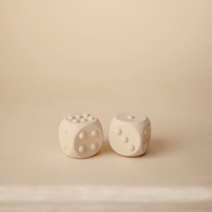 Combine learning and play with the mushie Dice Press Toy. Made with 100% food grade silicone, the pair of dice features poppable dots on each face, encouraging fine motor skill development while also providing a tool for teaching counting and simple arithmetic. A sensory toy and STEM toy all in one, this set of two was developed to keep little hands and minds busy.