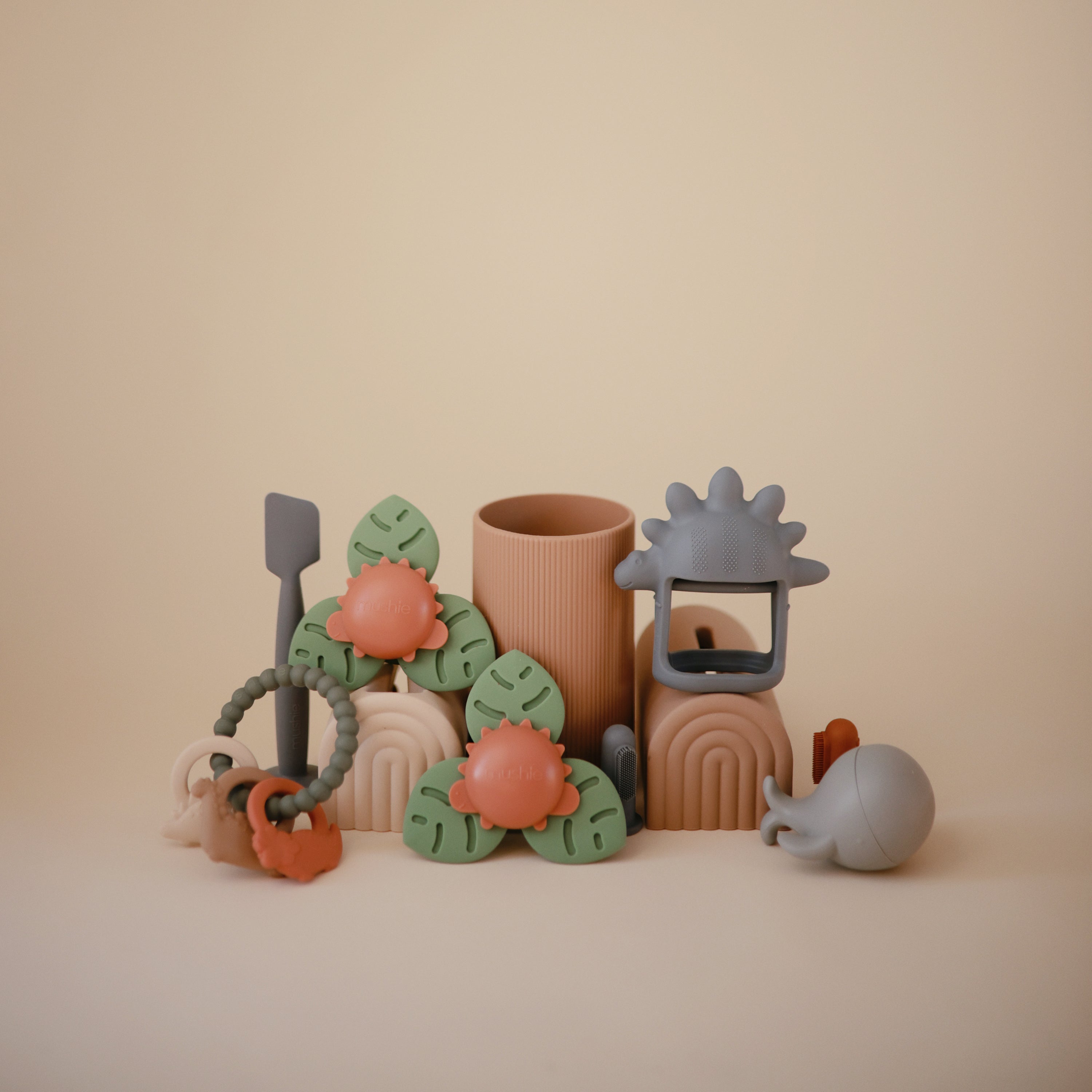 Featuring a playful design and soothing colors, our dino suction spinner toy will captivate your little one’s imagination. Littles can spin the 100% food-grade silicone leaves around the dinosaur to create a delightful visual and soothing sensory experience. The sturdy suction ensures the spinner stays in place, preventing accidental drops and encouraging independent play. Keep baby’s attention at home or on-the-go by suctioning to highchairs, cabinet doors, airplane trays, or the bathtub.