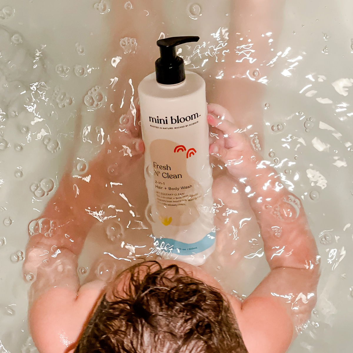 Our sulfate free 2-in-1 hair + body wash gently cleanses from head to toe.