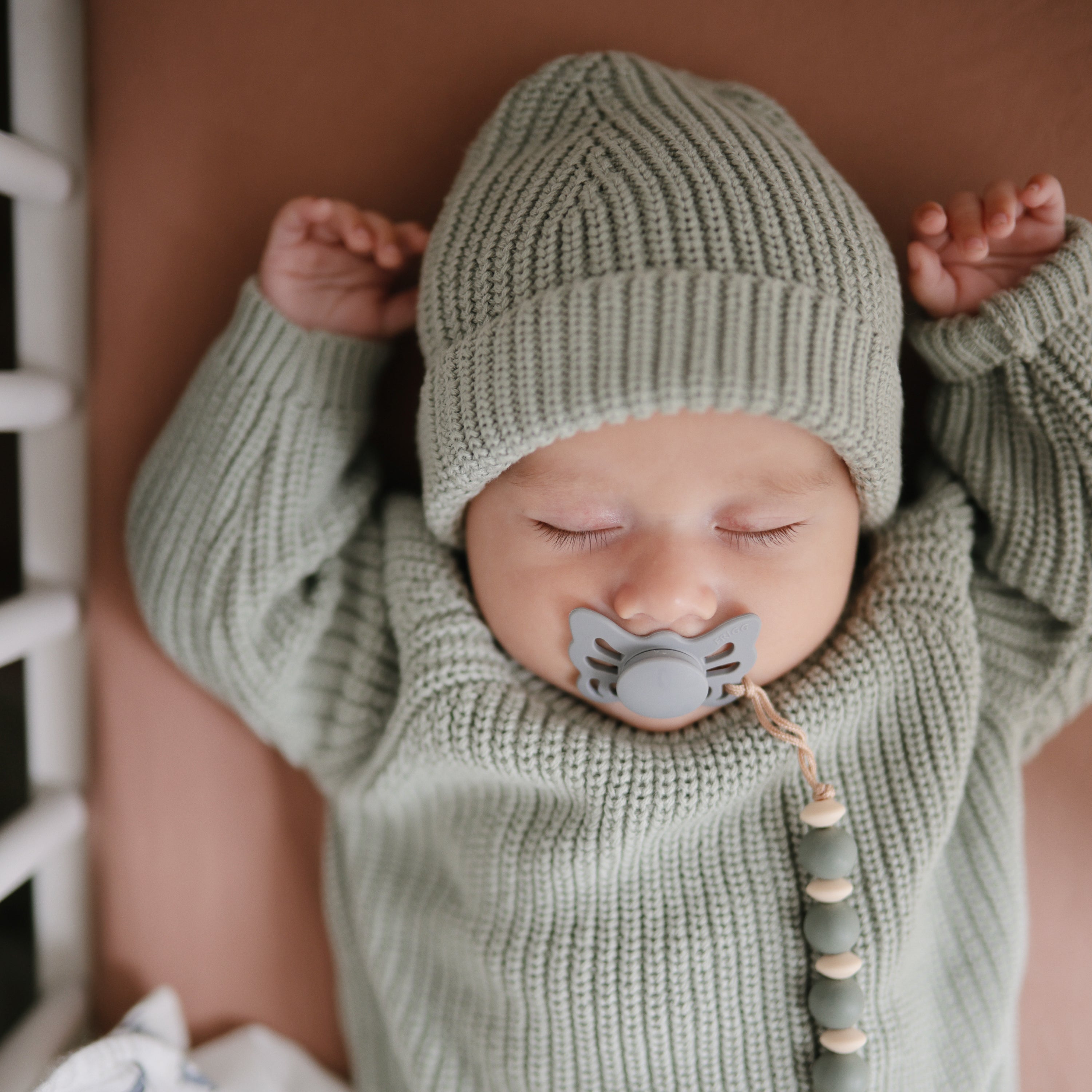 The FRIGG Butterfly silicone pacifiers are thoughtfully designed for your baby's comfort and safety with an improved SilkySoft™ nipple and innovative Click-lock system. FRIGG Butterfly is inspired by the beautiful transformation of a caterpillar into a butterfly. The shield mimics calming butterfly wings and has large air holes for added safety.