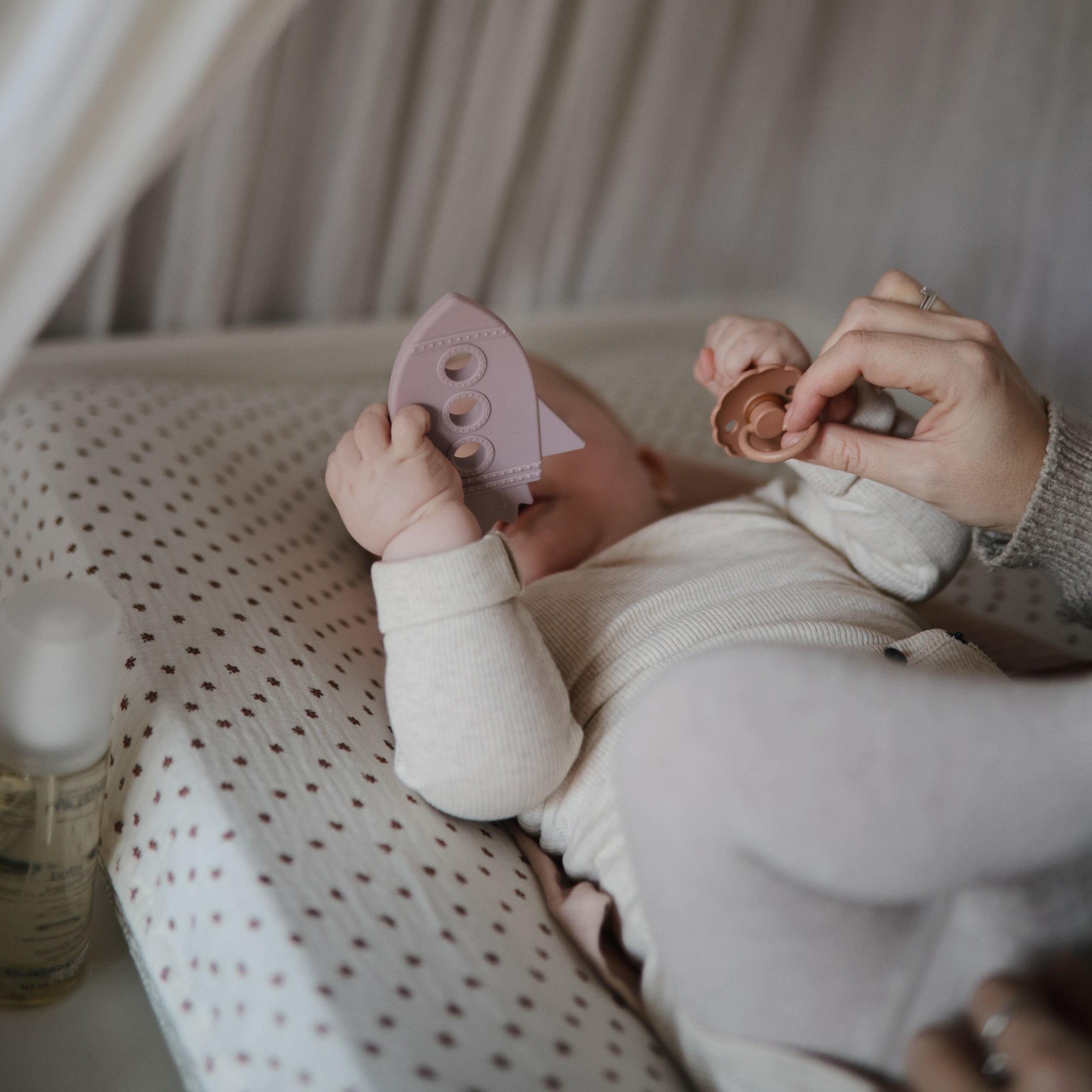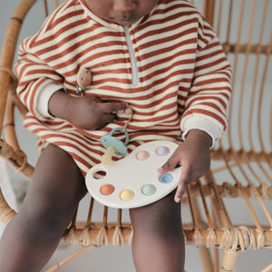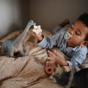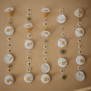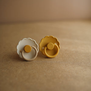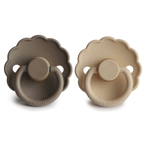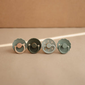 The FRIGG line of daisy natural latex pacifiers has been thoughtfully designed for your baby's comfort. The outward curve keeps the pacifier off their delicate skin, while features like air holes and a security handle ensure your baby stays safe. Available in a range of soft colors, FRIGG pacifiers make a beautiful addition to your collection of baby essentials.