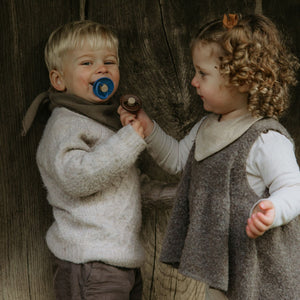 The FRIGG line of natural rubber pacifiers have been thoughtfully designed for your baby's comfort. The outward curve keeps the pacifier off their delicate skin, while features like air holes and a security handle ensure your baby stays safe. Available in a range of soft colors, FRIGG pacifiers make a beautiful addition to your collection of baby essentials.