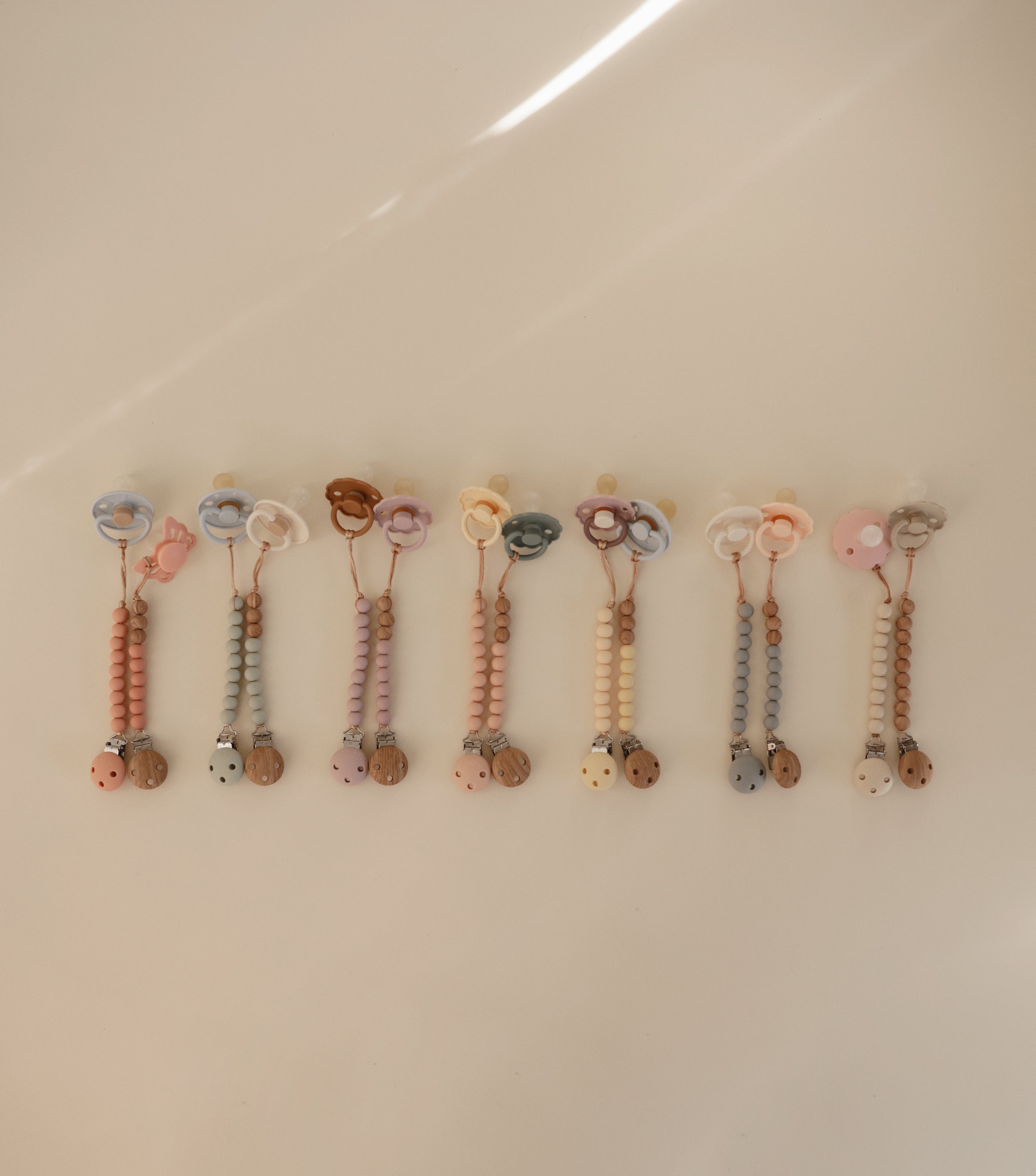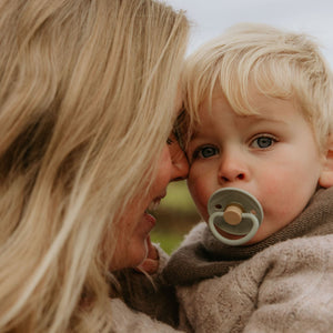 The FRIGG line of natural rubber pacifiers have been thoughtfully designed for your baby's comfort. The outward curve keeps the pacifier off their delicate skin, while features like air holes and a security handle ensure your baby stays safe. Available in a range of soft colors, FRIGG pacifiers make a beautiful addition to your collection of baby essentials.