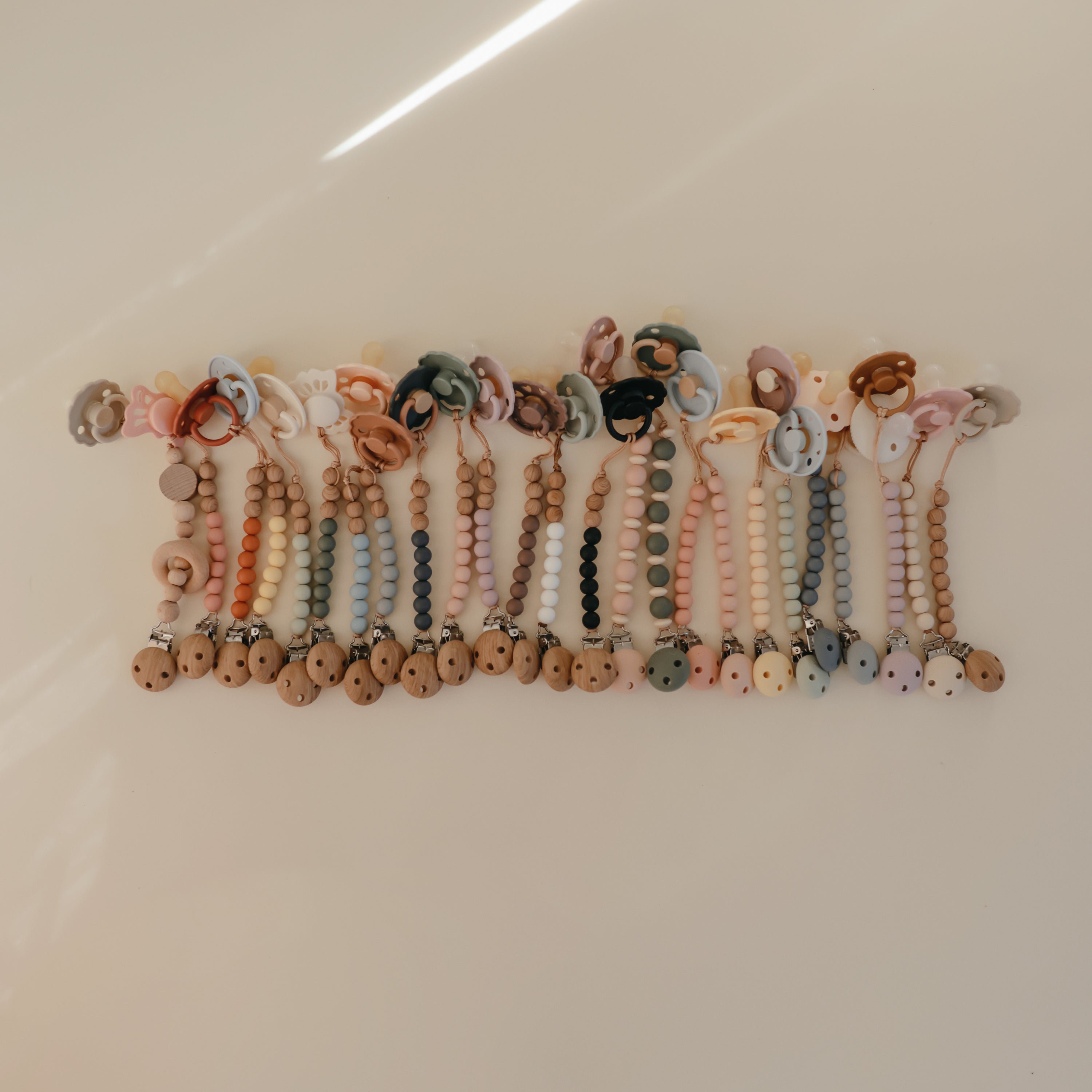 The FRIGG line of silicone pacifiers have been thoughtfully designed for your baby's comfort. The outward curve keeps the pacifier off their delicate skin, while features like air holes and a security handle ensure your baby stays safe. Available in a range of soft colors, FRIGG pacifiers make a beautiful addition to your collection of baby essentials.