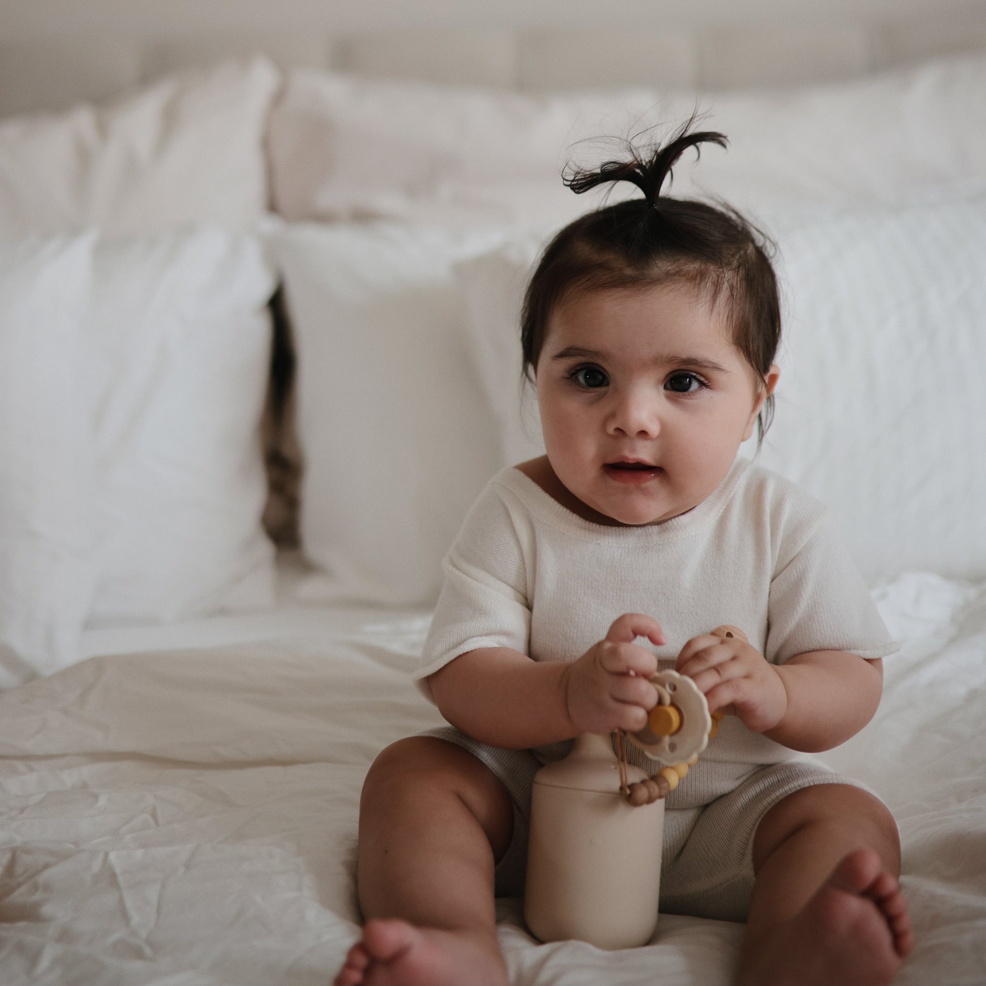 The FRIGG line of silicone pacifiers have been thoughtfully designed for your baby's comfort. The outward curve keeps the pacifier off their delicate skin, while features like air holes and a security handle ensure your baby stays safe. Available in a range of soft colors, FRIGG pacifiers make a beautiful addition to your collection of baby essentials.