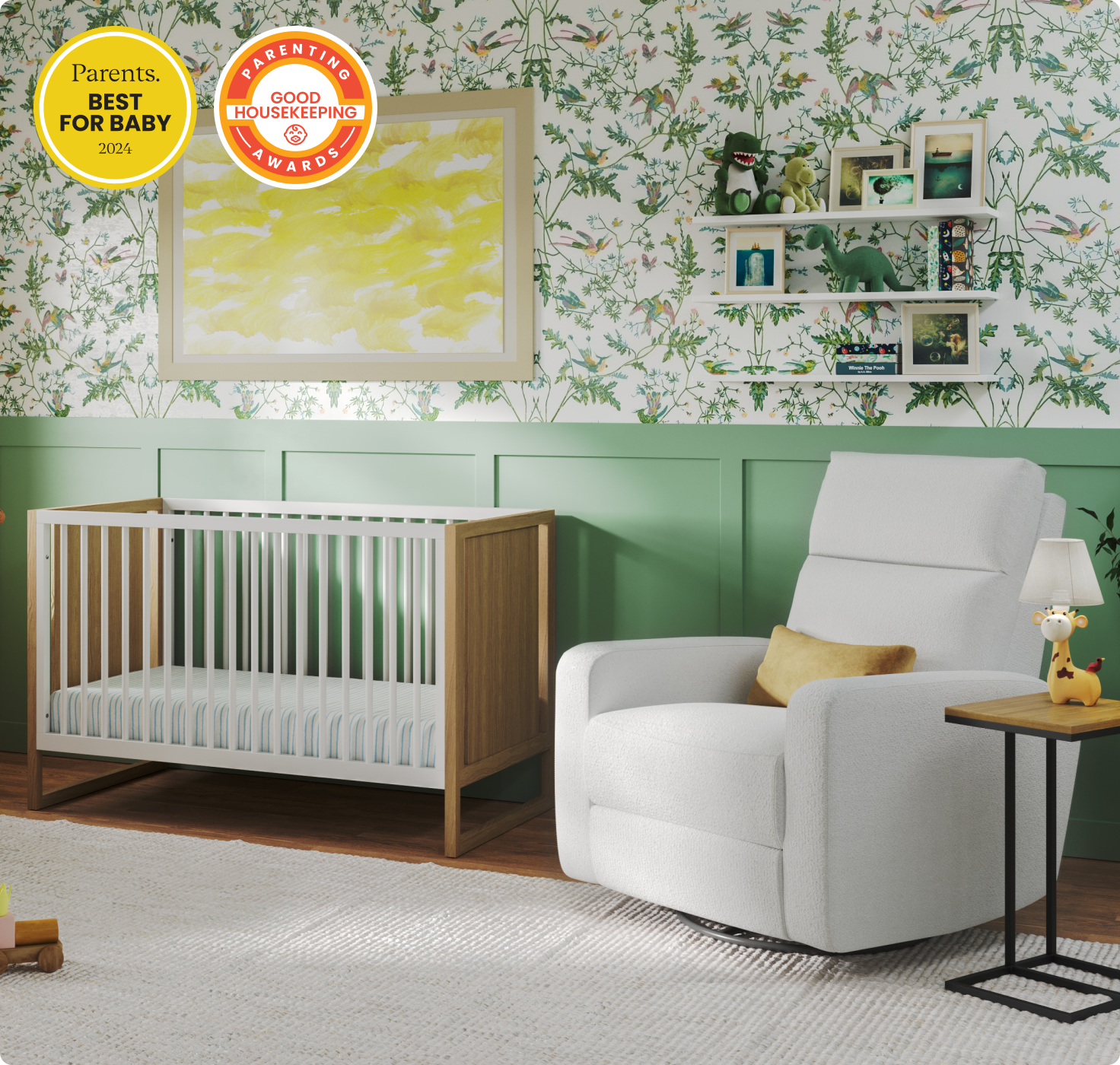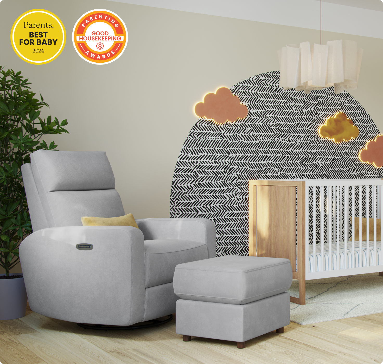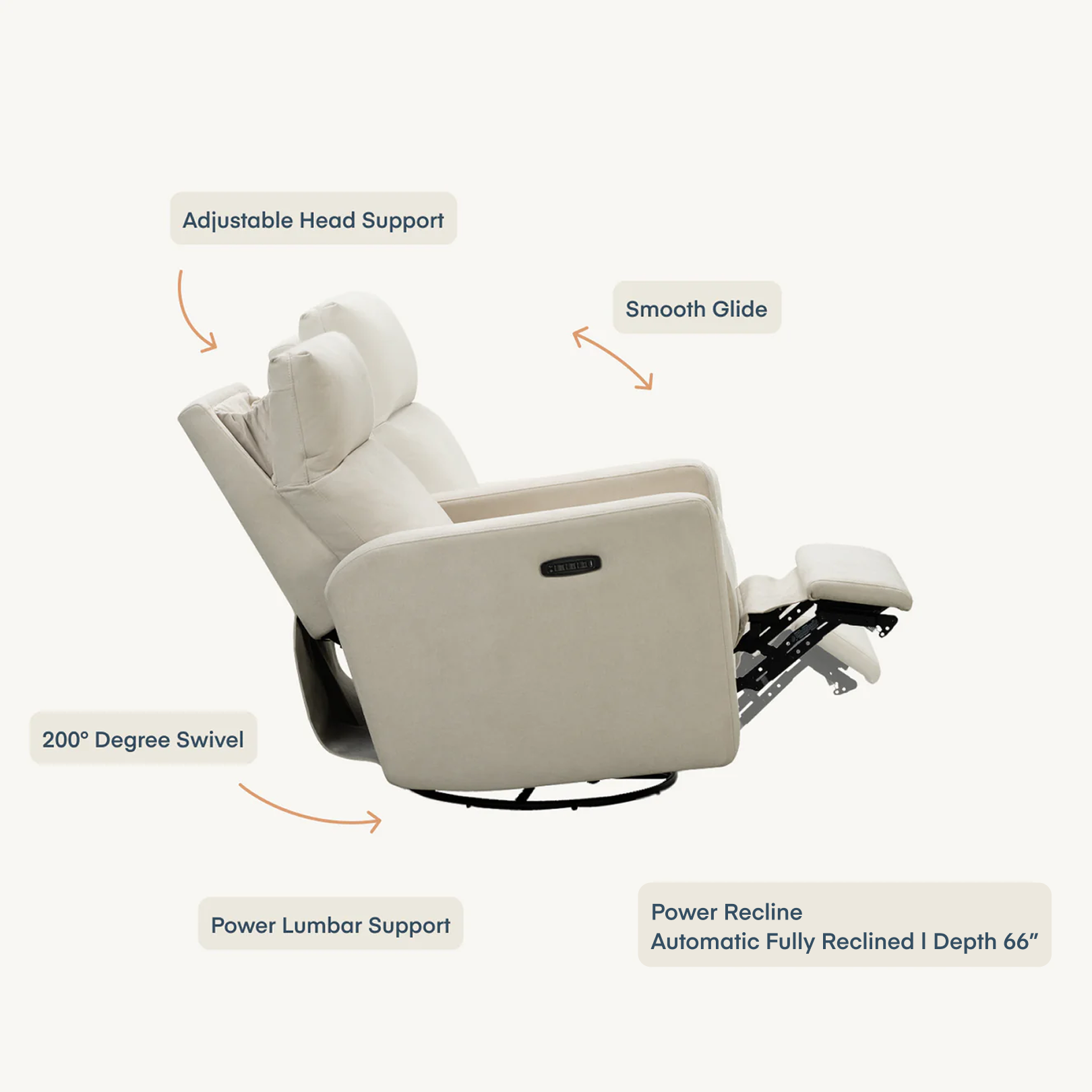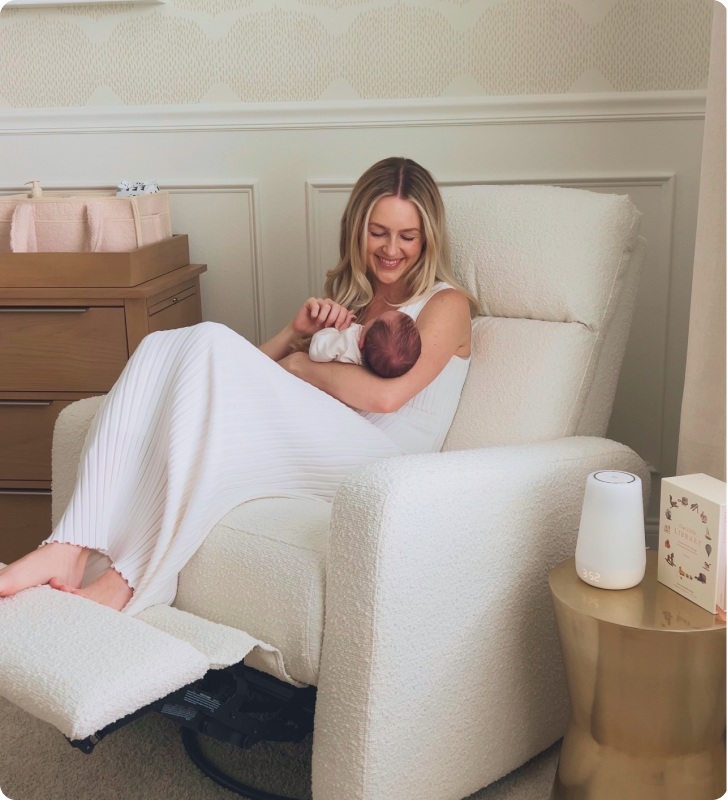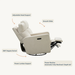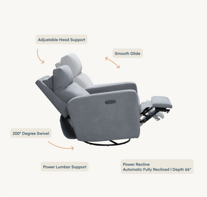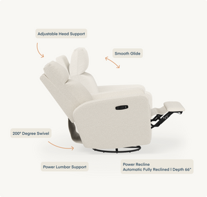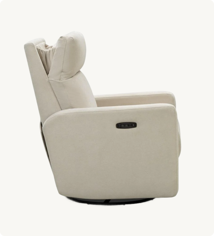 Meet our most premium nursery glider. Built with a thoughtful combination of design, function, and ultimate comfort, it has more features than any other glider on the market, including a smooth power recline and automated lumbar support for added back relief. Made with durability in mind, all gliders are upholstered in soft, performance fabric.