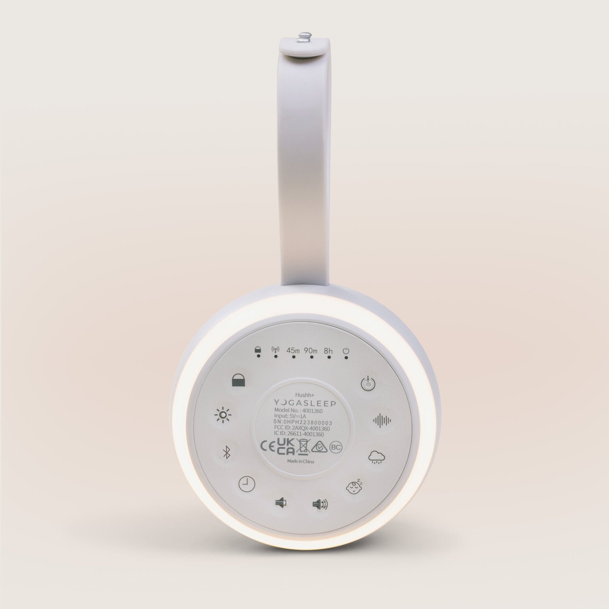 With all the features of the original Hushh, plus even more sleep sounds, a wireless speaker, and a longer-lasting battery, the Hushh+ will lull your little one to sleep at home or on the go. Choose from 20 soothing sleep sounds or use the wireless speaker to create the perfect soundscape for a dreamy night’s sleep anywhere. Compatible with Yogasleep Wireless Charger, Yogasleep USB Power Adapter, and Hushh Travel Case.