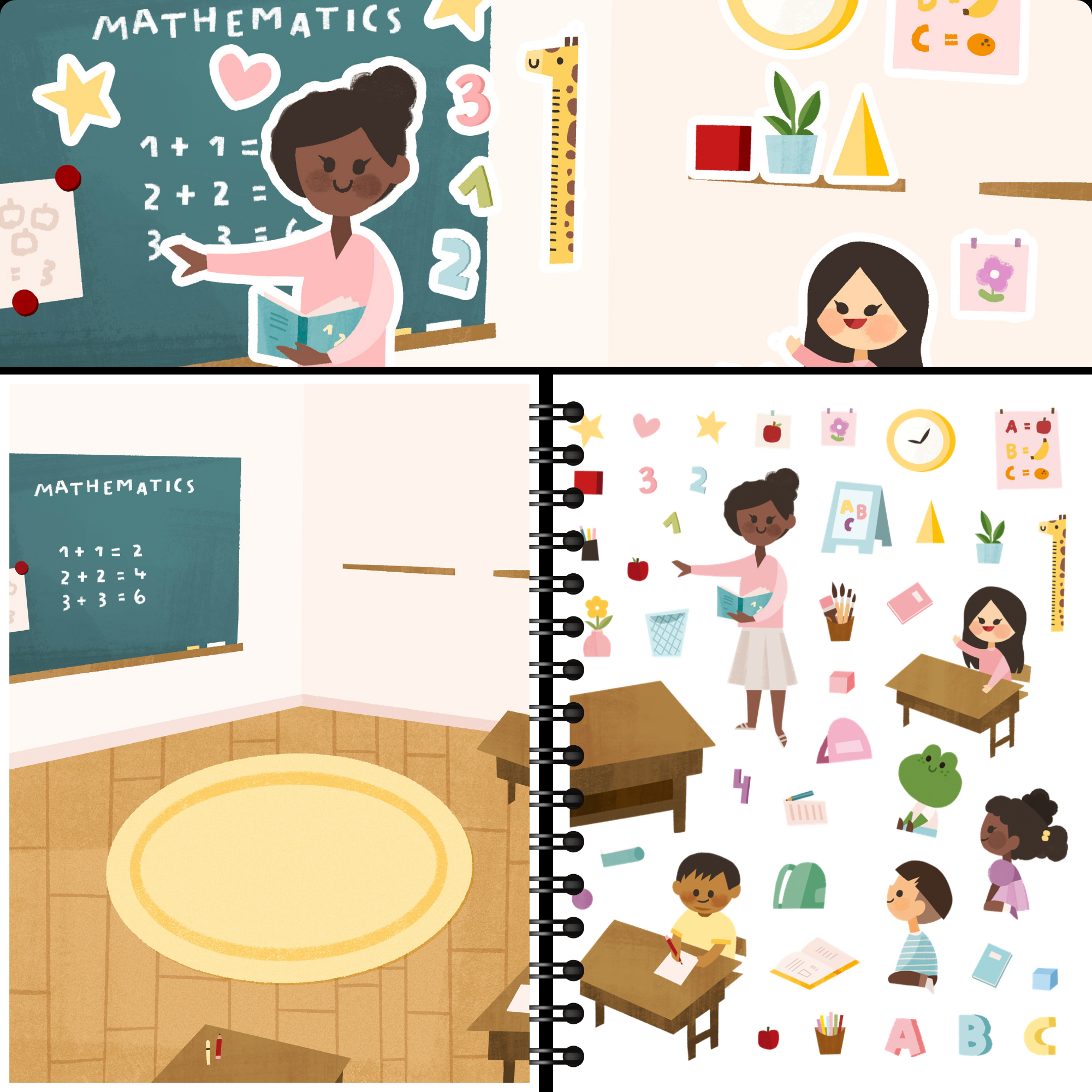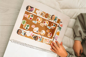 Our sticker book features over 500 hand-drawn stickers created by our talented artist team. The accompanying scenes are conveniently located next to the sticker sheet, eliminating the need for constant flipping.