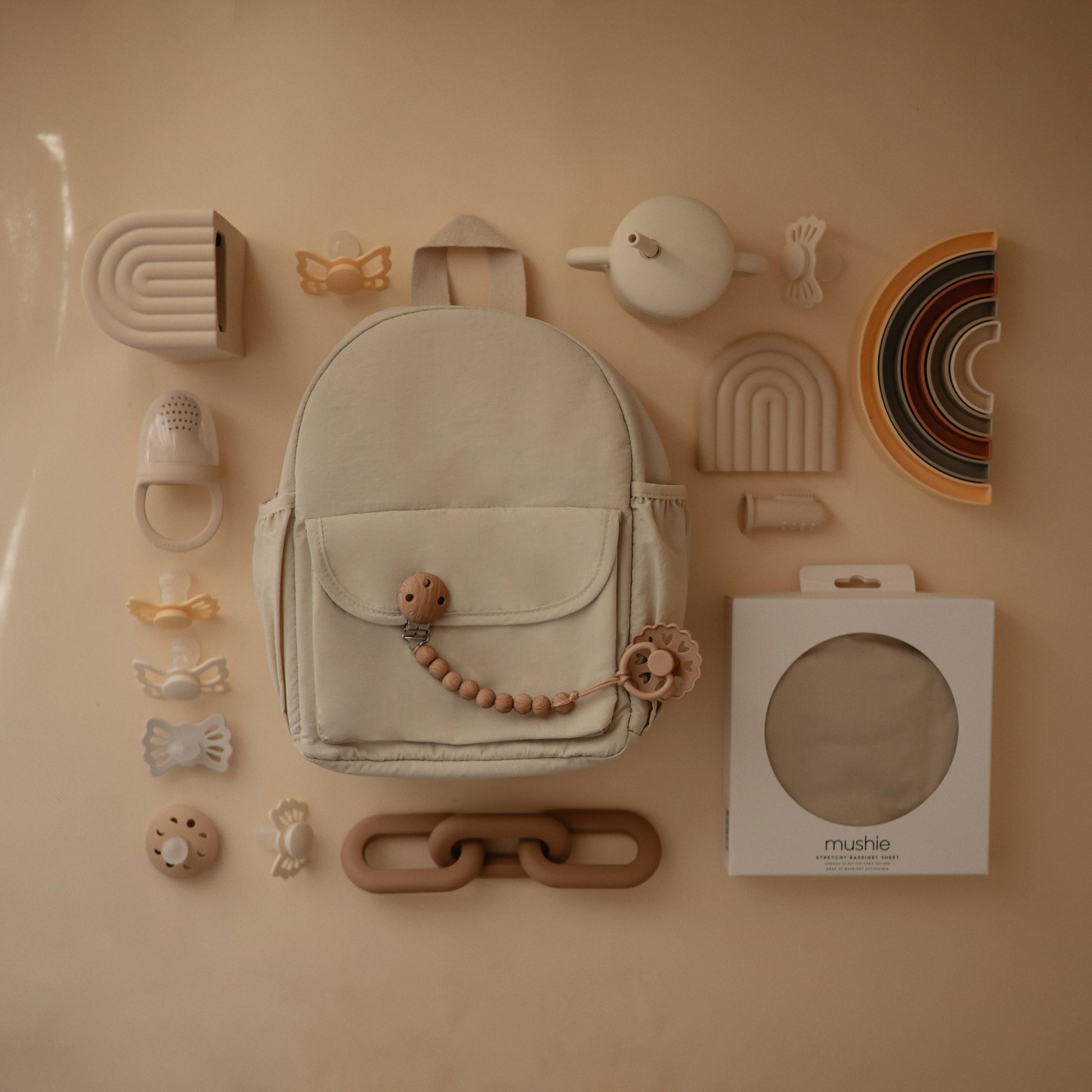 Offer comfort and relief with a teether designed to soothe sore gums throughout the entire teething journey. Made from 100% food-grade silicone, our teether is easily held by tiny hands. With three connecting links that mirror modern design aesthetics, parents can maintain their personal style while littles enjoy a practical and playful toy.