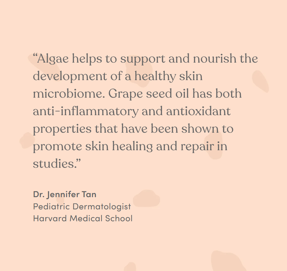 Developed with pediatric dermatologists, this formula is made with the best plant-based ingredients like our signature barrier-protecting and hydrating marine algae blend and organic superfoods like grape seed oil and jojoba oil. Clinically proven to provide 96 hours of hydration, it locks in long-lasting moisture to keep baby's skin hydrated and happy day after day.