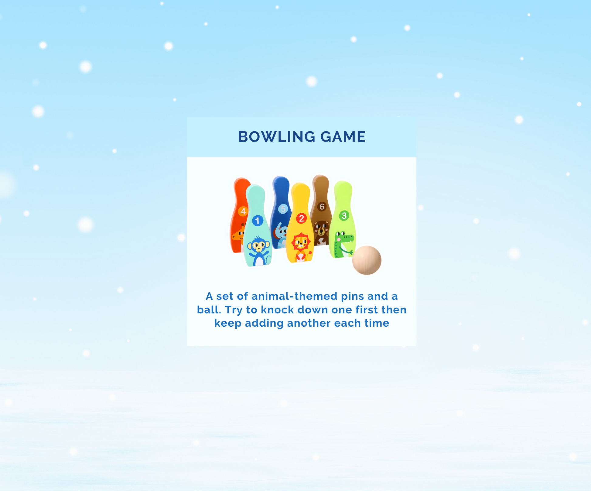 Educational box for babies aged 19-21 months, full of developmental items to aid baby in their cognitive growth. Each box comes with 6 products, all products are made from sustainable and safe material. These boxes encourage open ended play while helping to strength fine motor skills.