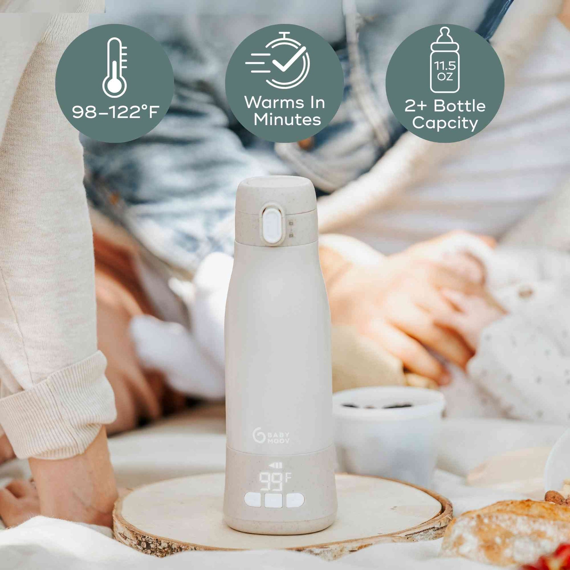 Feeding your baby on the go just got easier with our best-selling Moov & Feed Portable Milk and Water Warmer. Designed to take the stress out of warming bottles when you're at home or on the move, it lets you quickly and easily heat water, formula milk or breast milk anytime, anywhere—because we know that when hunger strikes, every second counts.