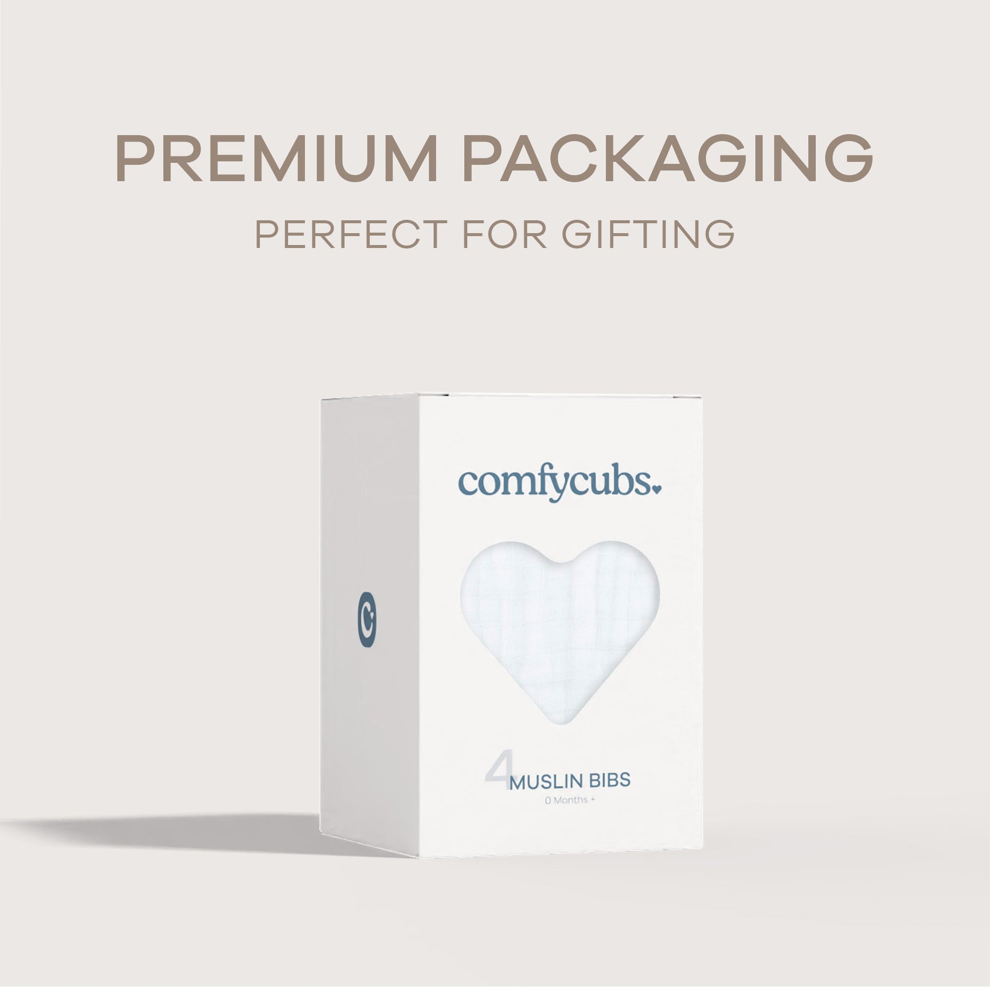• Giftable Box: These bibs come packaged in a beautiful and convenient giftable box, making them the perfect baby shower or newborn gift for a new parent.