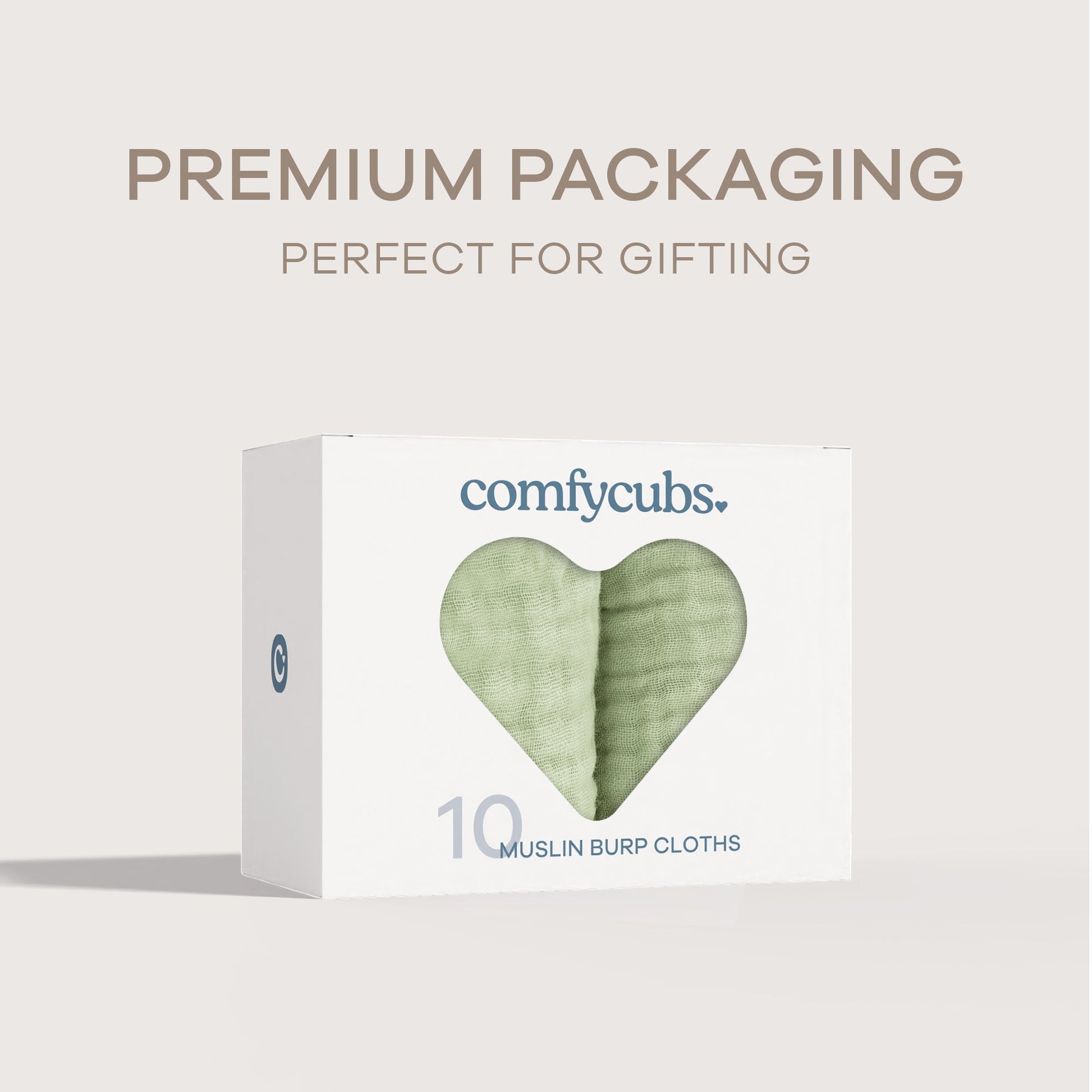 • Beautiful Gift Packaging: Our Comfy Cubs muslin burp cloths come in stunning gift packaging, making them super giftable and the perfect newborn or baby shower gift for new parents. There's no need to gift wrap, just shop and gift or add them to the baby registry. They are perfect for both girls and boys.