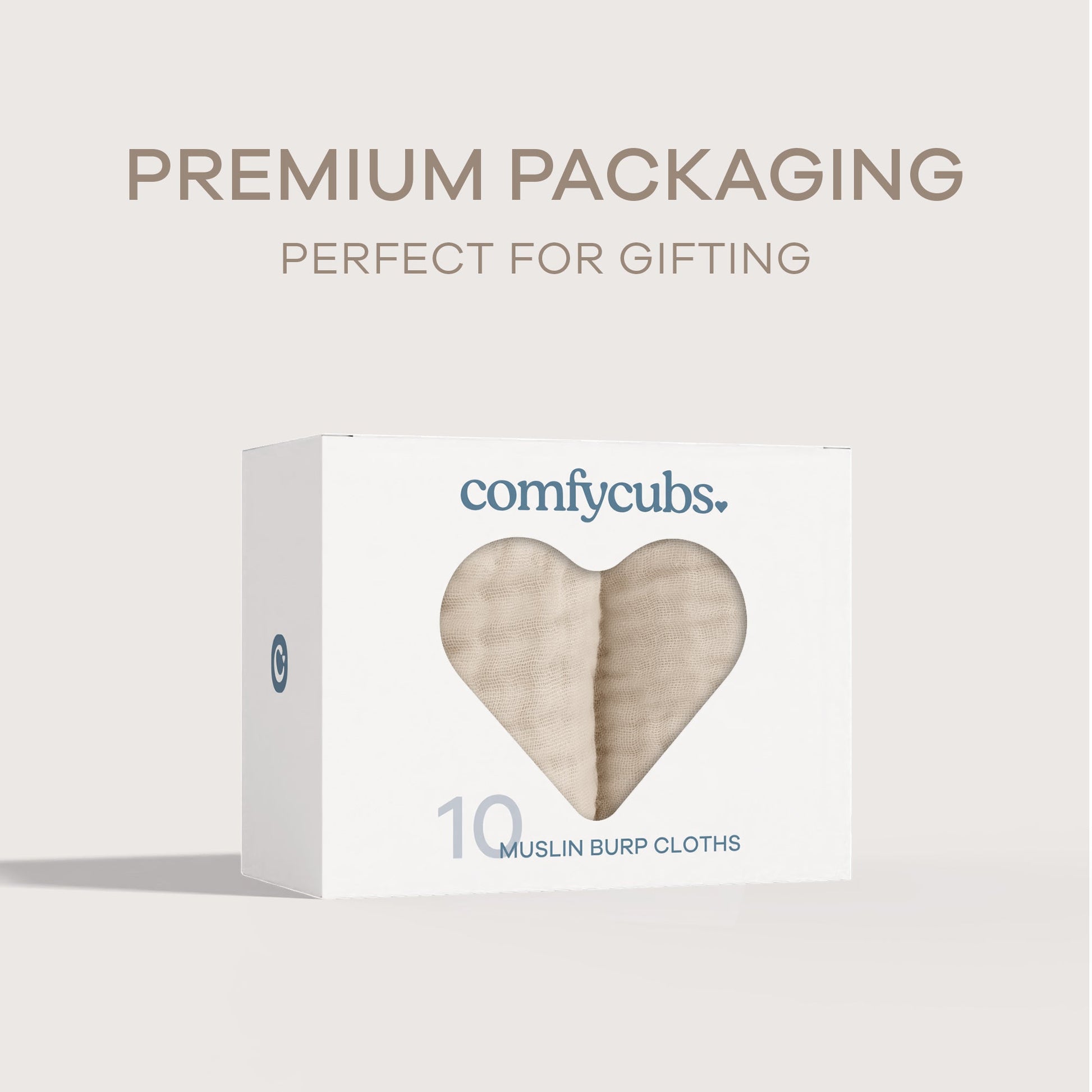 • Beautiful Gift Packaging: Our Comfy Cubs muslin burp cloths come in stunning gift packaging, making them super giftable and the perfect newborn or baby shower gift for new parents. There's no need to gift wrap, just shop and gift or add them to the baby registry. They are perfect for both girls and boys.