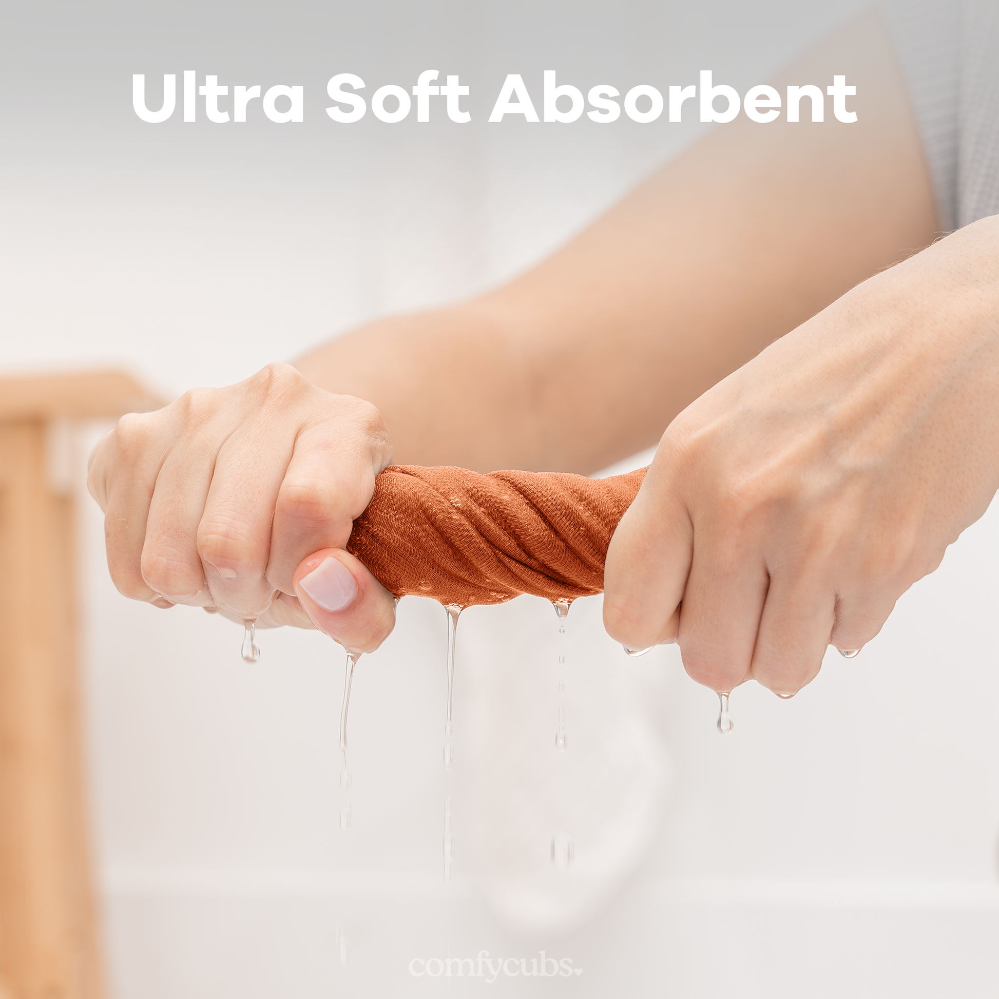 Give your baby a softer, more comfortable bath while keeping them cleaner from head to toe with premium muslin cotton washcloths from Comfy Cubs. Here at Comfy Cubs we know exactly what it’s like to raise babies and small toddlers. They always seem to be messy, sweaty, and in need of a quick bath. That’s why when it’s bath time you want washcloths that aren’t just easy to use and big enough to scrub up their whole body, you want them to be softer and gentler on sensitive baby skin. We created these luxury-grade muslin cotton baby washcloths so you can start keeping them cleaner all over while better supporting their skin. Offering a super plush feel that’s soft to the touch our 6-layered muslin cotton washcloths help improve the lather while whisking away dirt, so you can care for their delicate skin while keeping those milk odors and messes to a minimum.