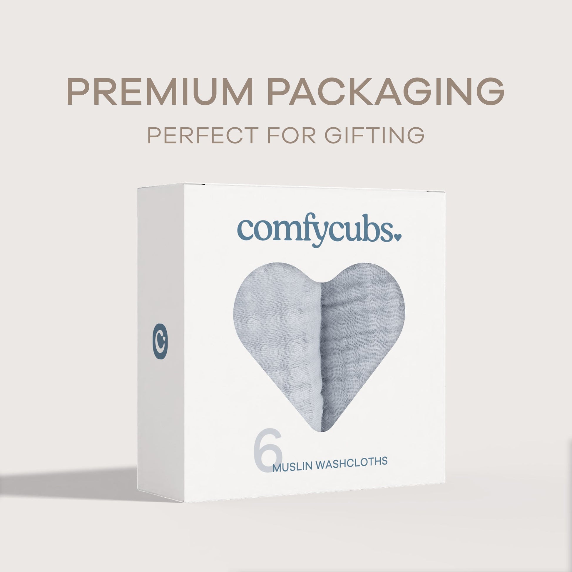 Large Premium 10 X 10 inches Muslin Cotton Washcloths – Comfy Cubs Washcloths are made in a large 10 X 10 inches size and come in a convenient 6 pack or 10 pack.