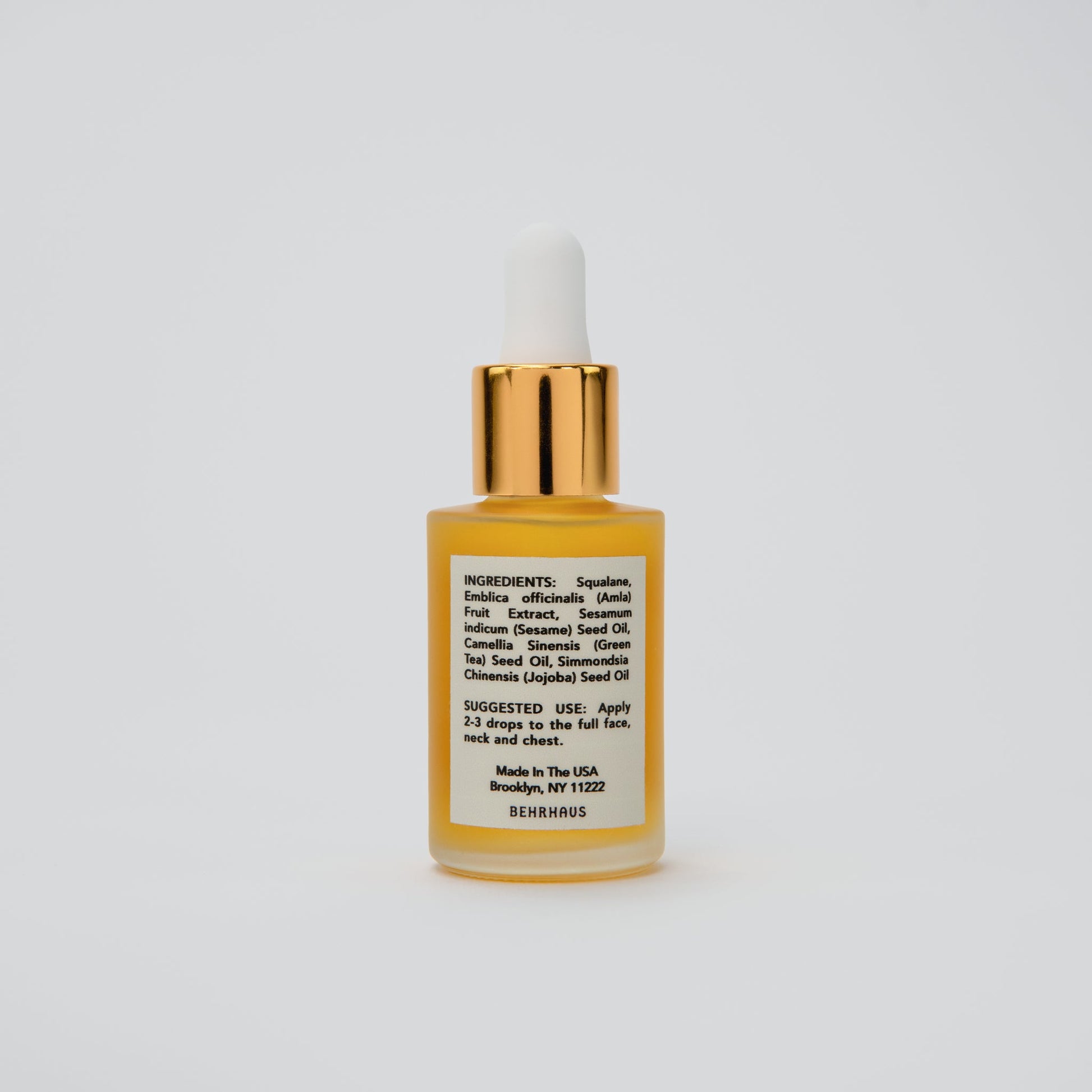 Rise and Shine! Meet your daily glow— this powerful blend of organic cold-pressed oils instantly brightens your complexion. Rise Face Oil activates your skin to increase luminosity while calming inflammation. Made with only five ingredients, this face oil will retain moisture and give you a dewy glow all day long. Amla is a rich source of Vitamin C, while Squalane and Jojoba repair the skin barrier. Green Tea is added to provide nourishing antioxidants that stimulate collagen synthesis and improve elasticity. This face oil sits well under makeup and is great for all skin types.