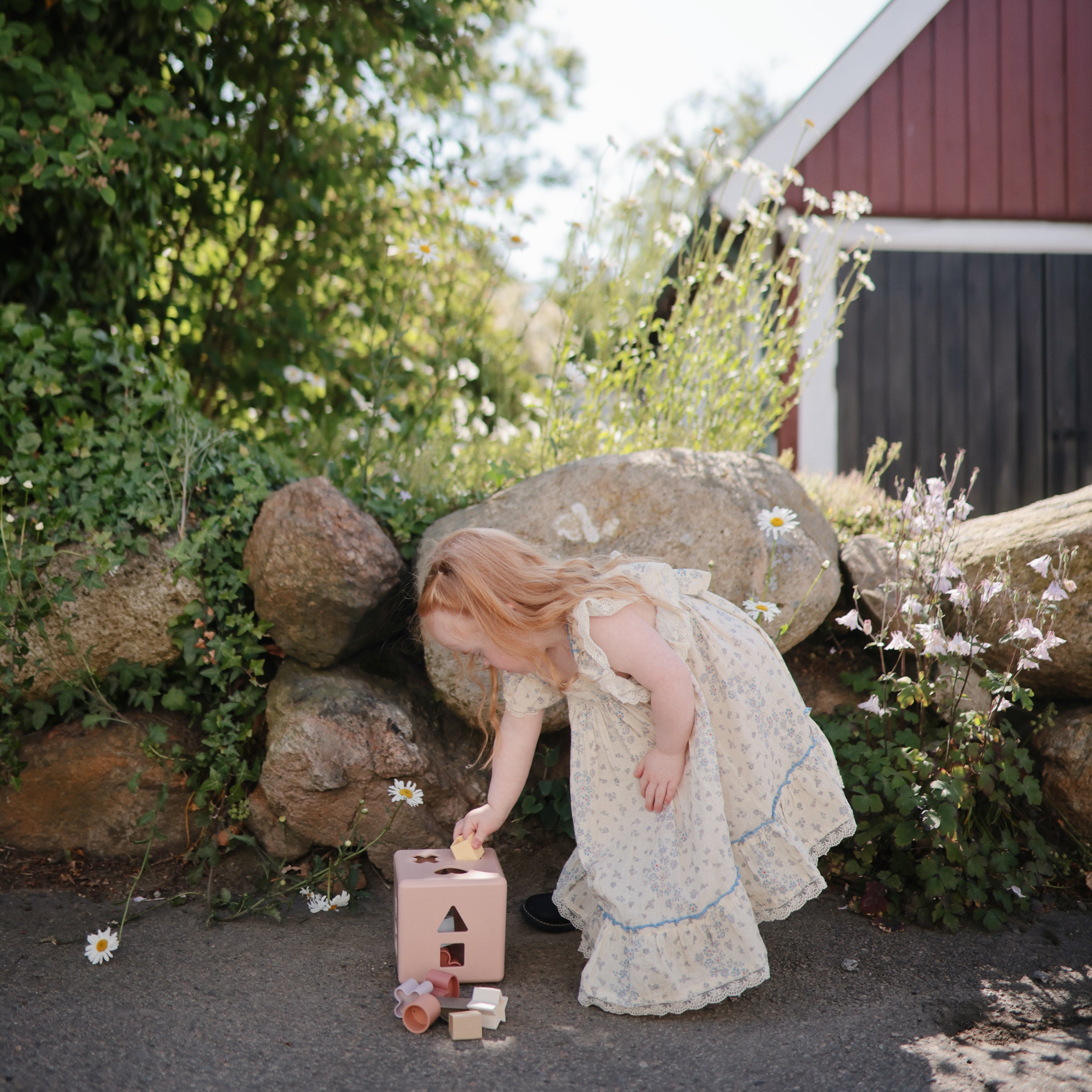 Our shape sorting box is made in Denmark and sets the stage for highly engaged play with endless opportunities for hands-on-learning. Featuring 12 shapes in soft colors, children will expand their fine motor skills as they match shapes to their paired cutouts.