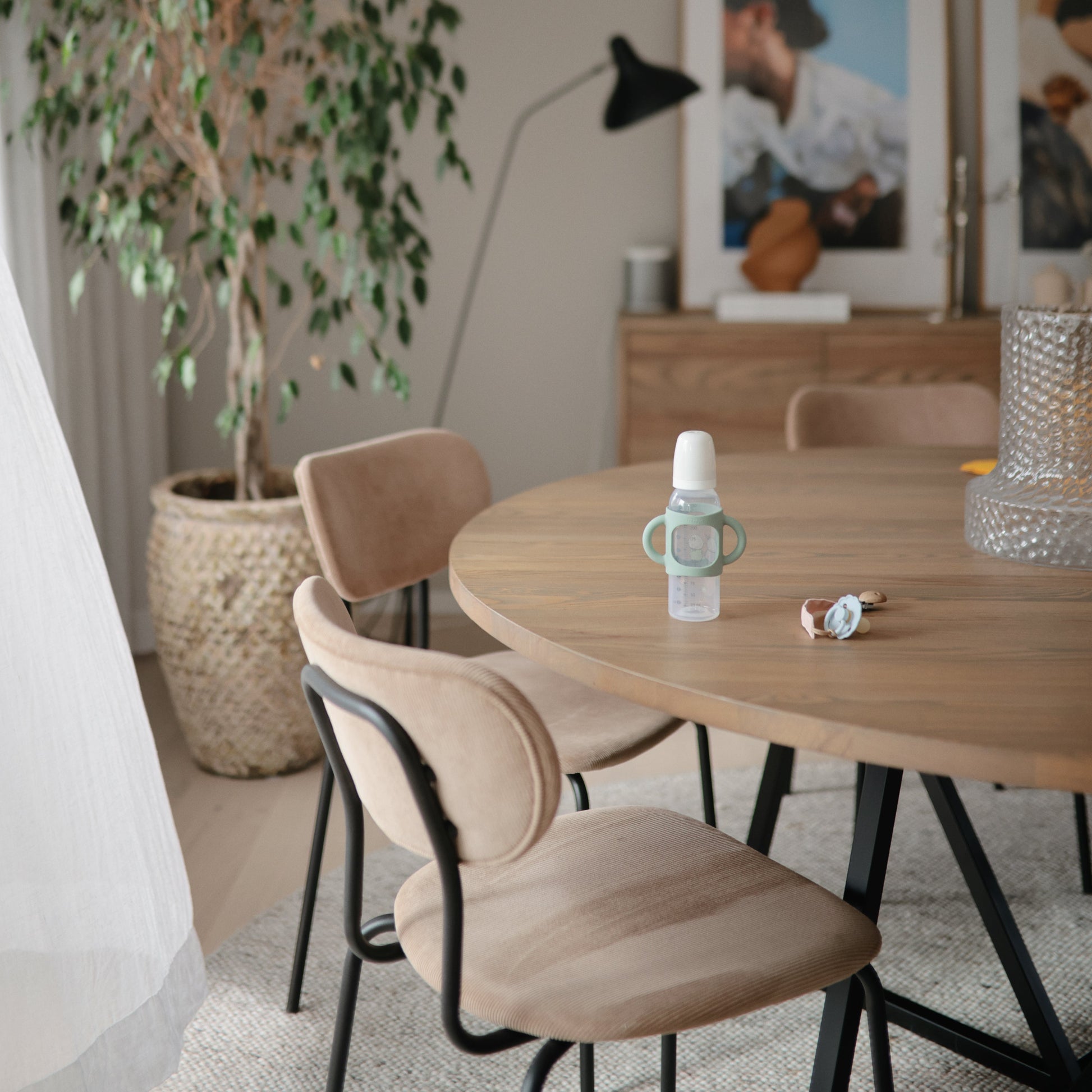 Mushie silicone bottle handles are designed to make feeding time a breeze. The flexible handles fit most standard and narrow baby bottles, giving your little one a comfortable grip as they learn to hold their bottle independently. Made from soft, durable food-grade silicone, they’re gentle on tiny hands and dishwasher safe for easy cleaning. Perfect for busy parents and growing babies, these handles add a touch of convenience and a splash of calming color to your daily feeding routine.