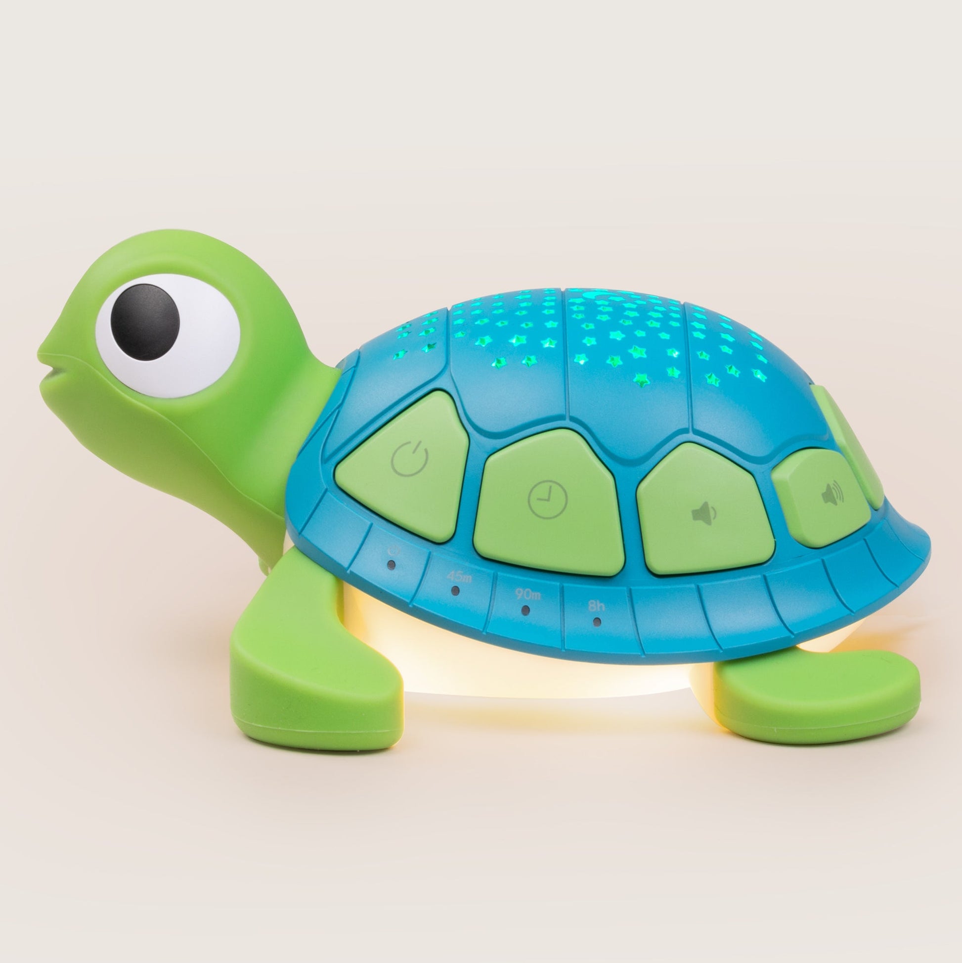 Make your bedtime routine easier with the sweet Soundscene turtle light projector and sound machine. Project a calming starry night display with the ceiling projector built into the shell or cast a glow with the amber night light perfect for nighttime feedings or children who are afraid of the dark.