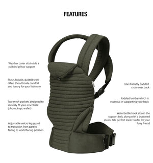 The Armadillo baby carrier has become the most loved carrier and voted "best of" carriers across the board. It includes everything a new parent would need and solves all the problems other carriers present. Thoughtfully designed and well balanced, this carrier includes perfect weight distribution and a padded back lumbar, making wearing for extended lengths of time, a breeze.