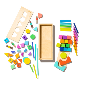 A brilliant, practical system of solid wood blocks for building spatial, language, and problem-solving skills. 70 heirloom quality pieces work with each other in more than 20 stage-based activities. Crafted by child development experts, these wooden toy blocks offer years of learning through play.