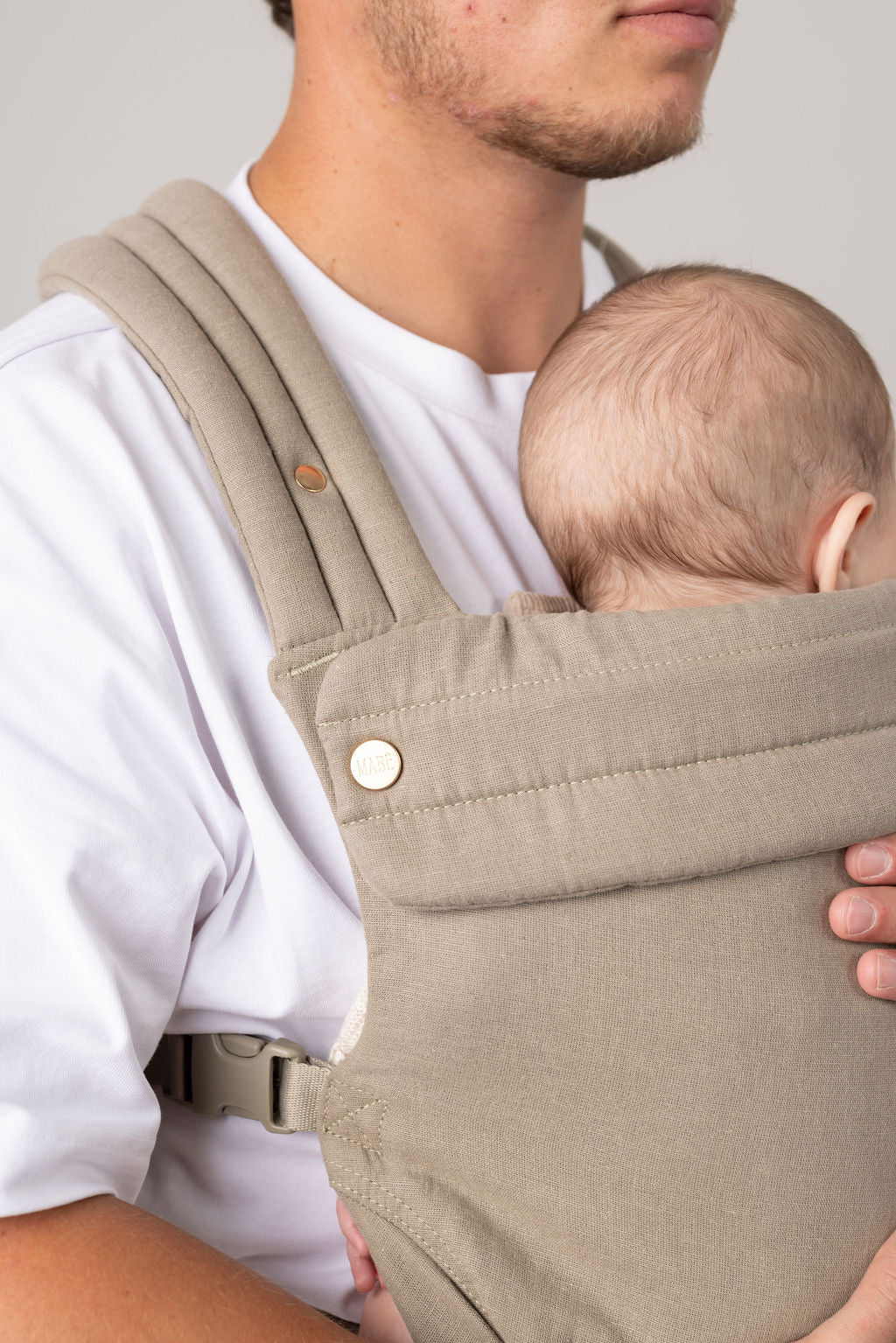 Our best-selling Monarch Carrier, now available in Stone Sage: a grounded sage green with grey undertones that’s part of our Legacy Collection, designed specifically for dads. Because fathers deserve something made just for them, too. The fabric is a cotton/linen blend.