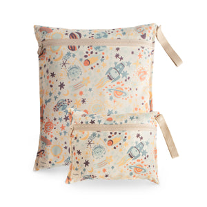Whether dealing with wet swimsuits or dirty clothes, parents can be prepared for any adventures that come their little’s way with a set of Mushie wet bags. Featuring a zipper closure and machine washable, water resistant material, our wet bags were designed to help tackle messy situations on the go. The handles include a snap closure to easily hang or attach to a stroller. Each set offers two different sizes, making these a convenient storage solution to include in a diaper bag or school bag.