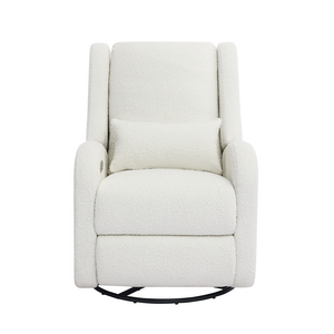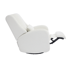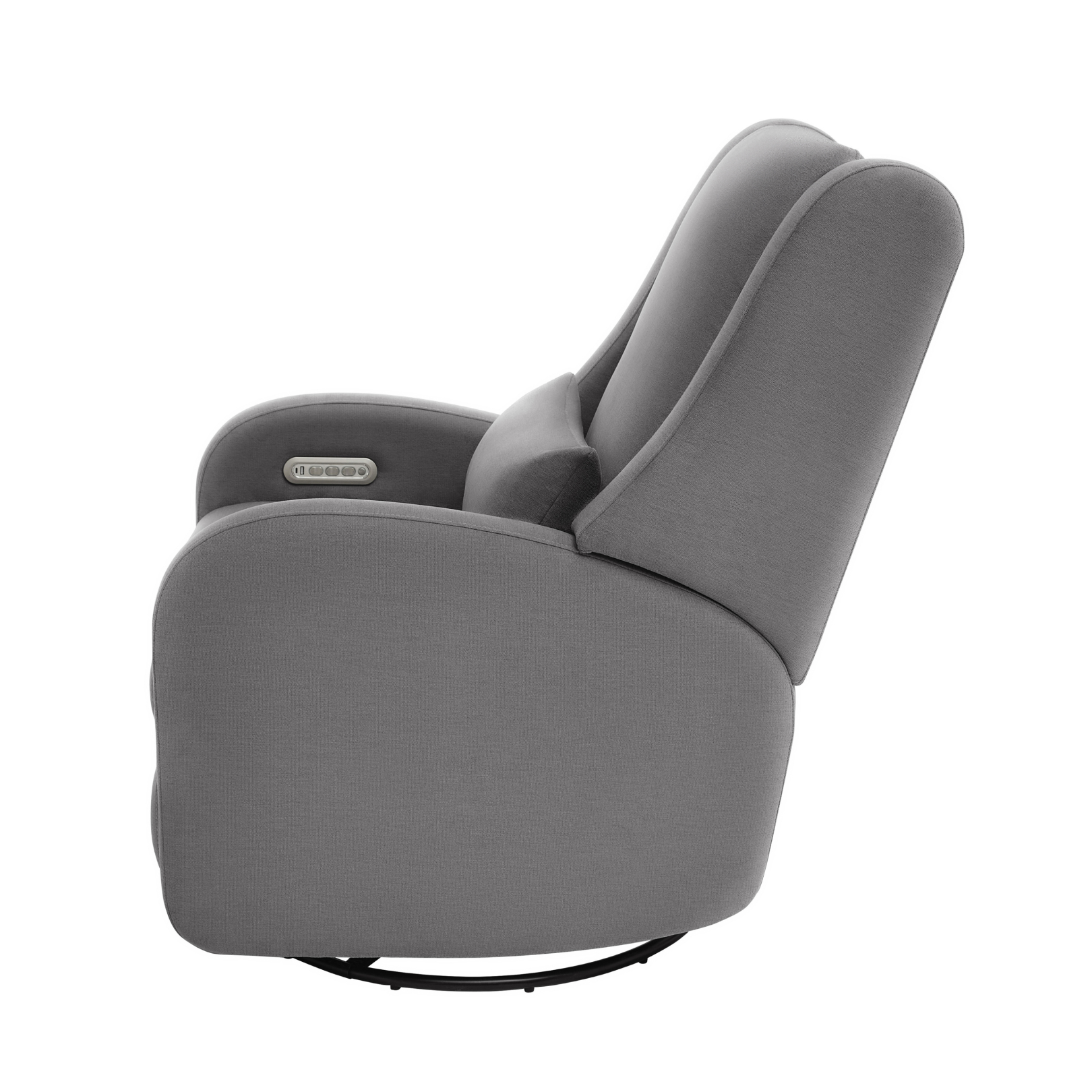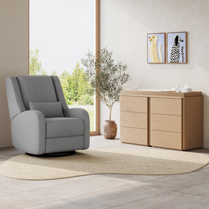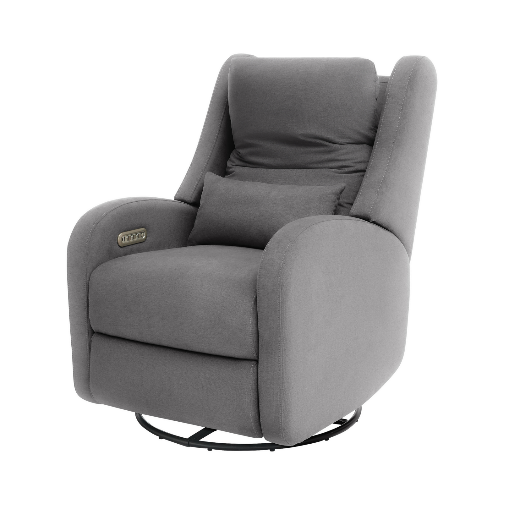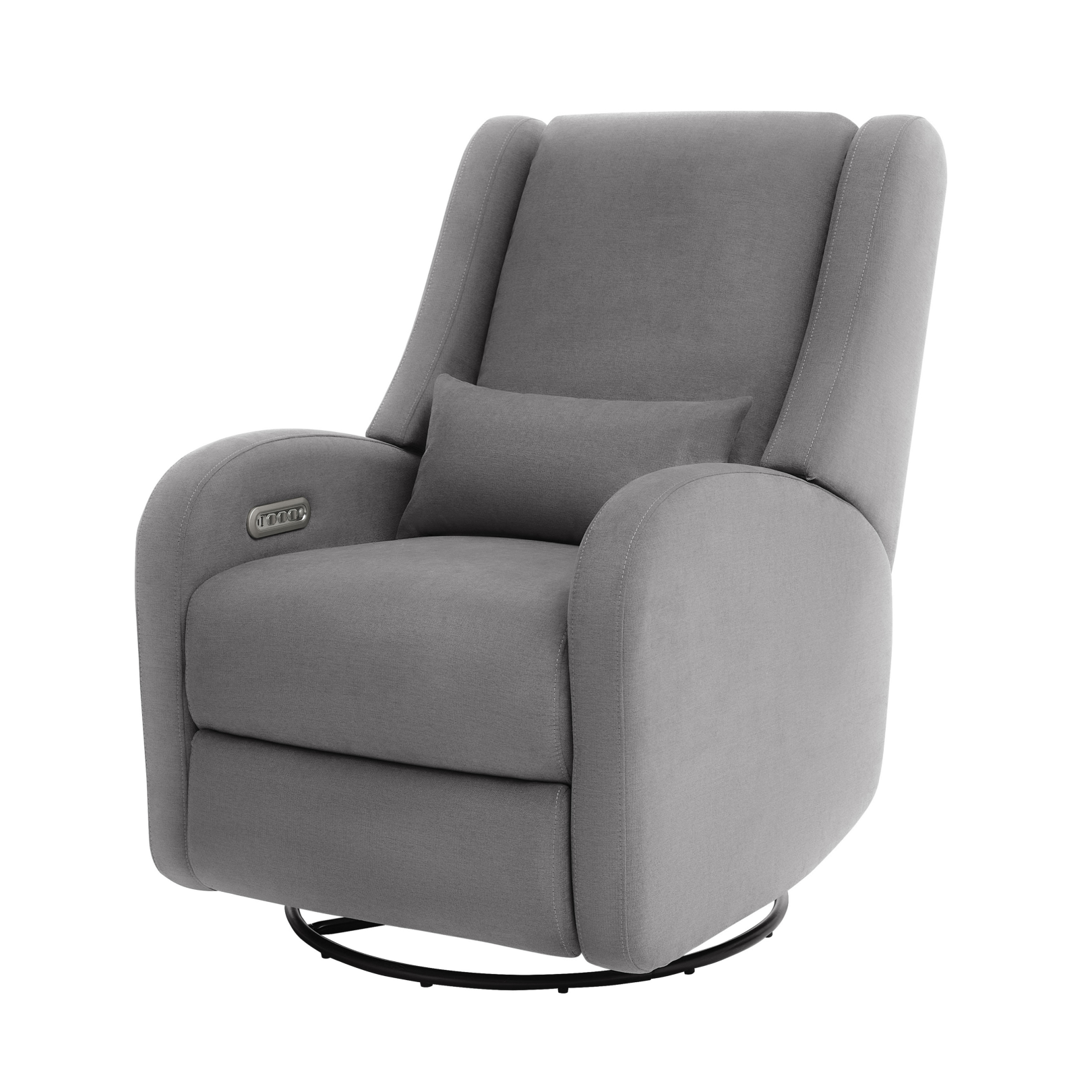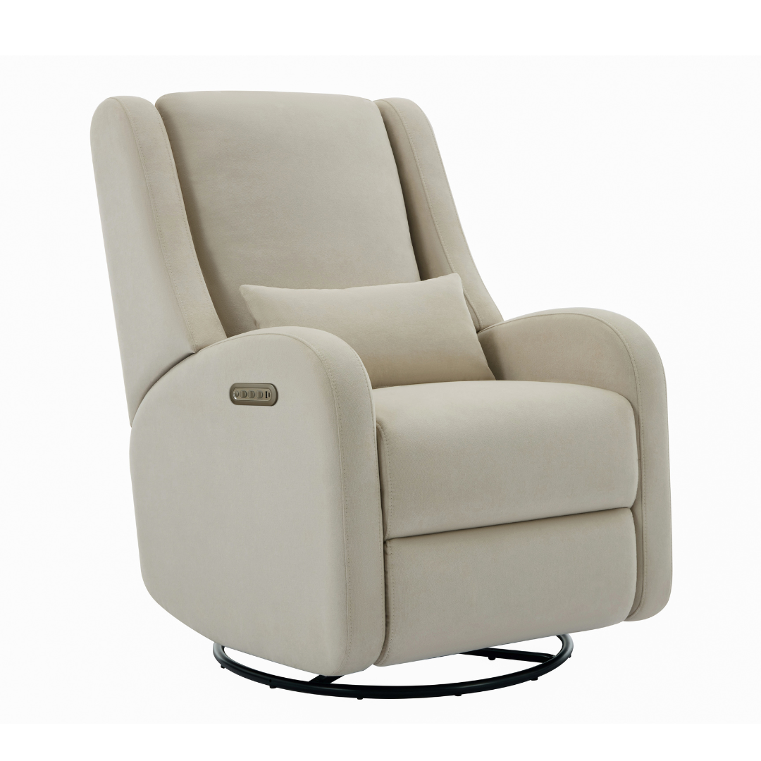 Our most premium glider, now available in a sleek, wingback design. The control panel is subtly hidden in the armrest, powering a smooth recline and glide, 200° swivel, adjustable headrest and power lumbar support. Upholstered in soft, stain-resistant fabric for ultimate comfort and durability.
