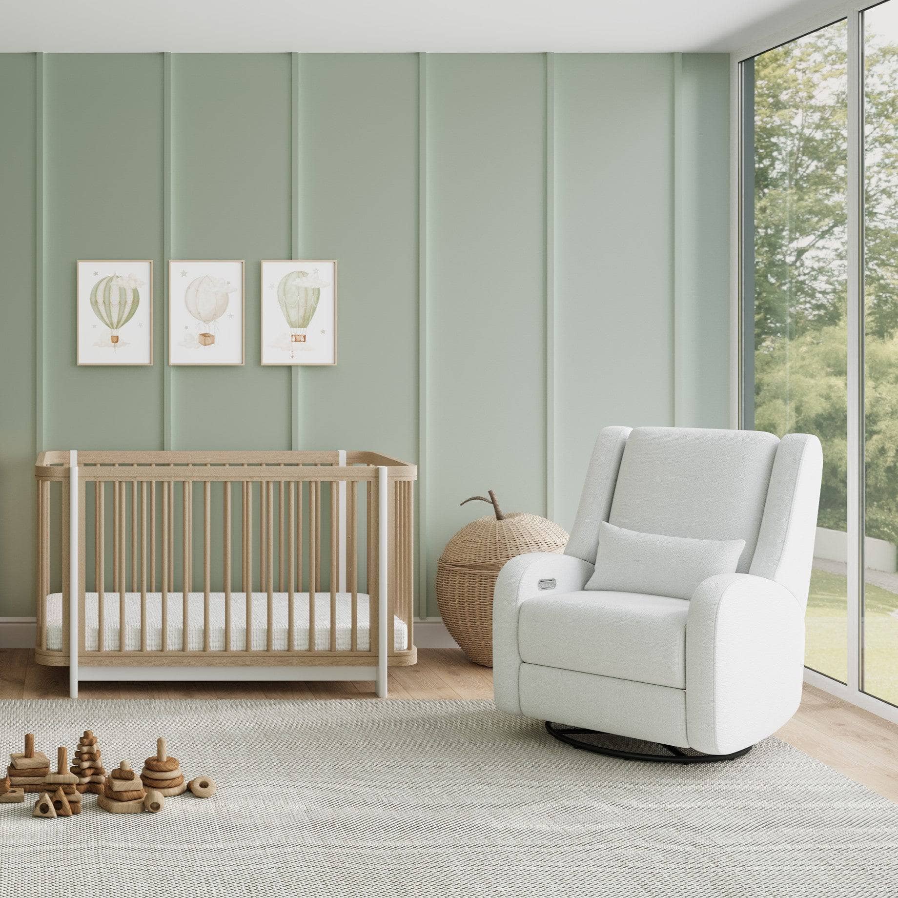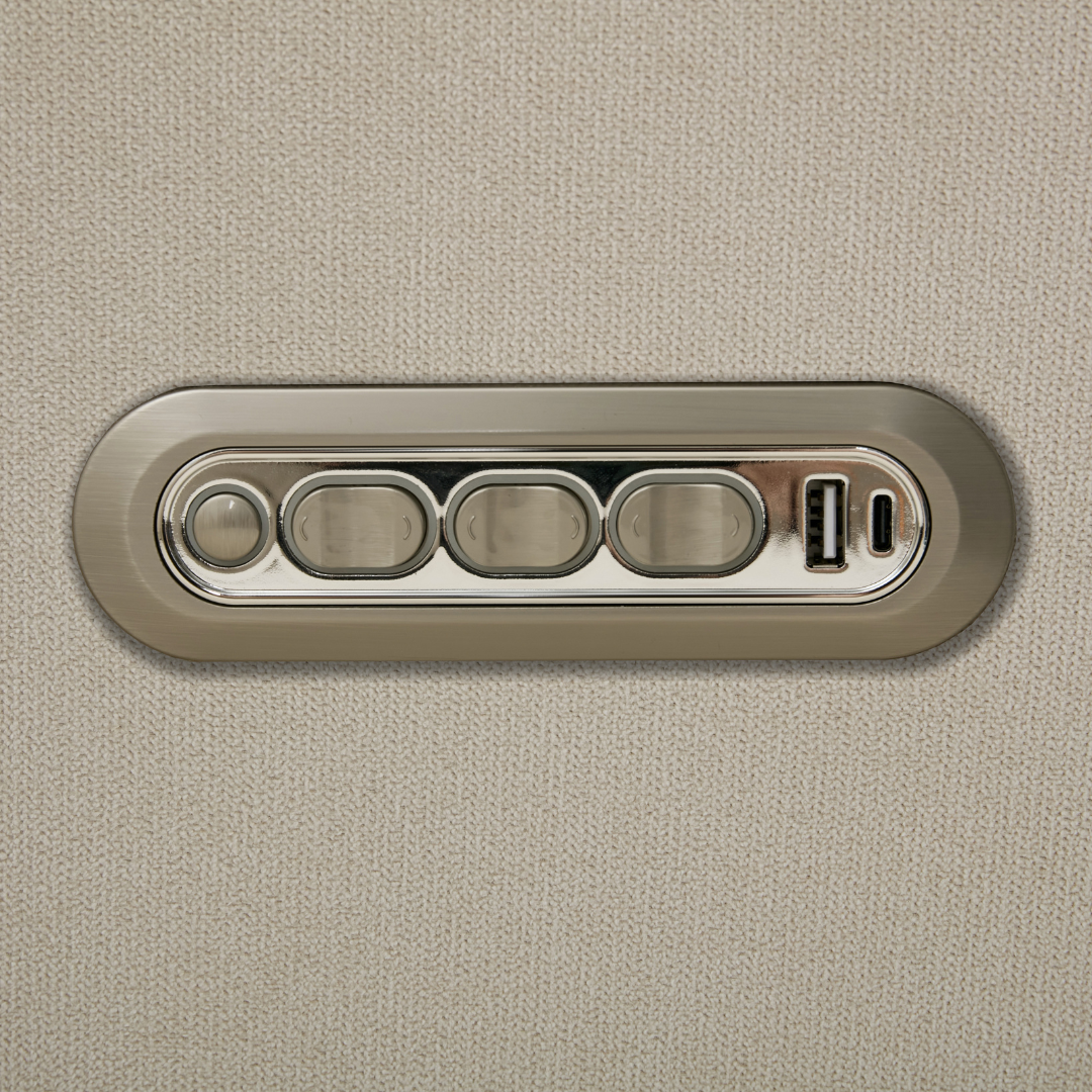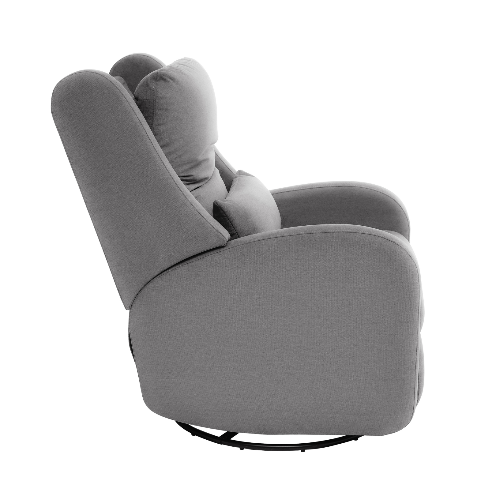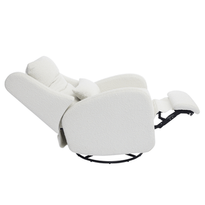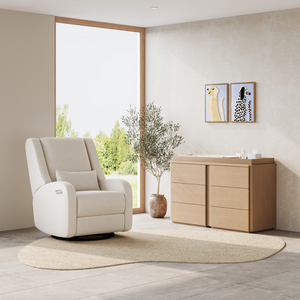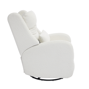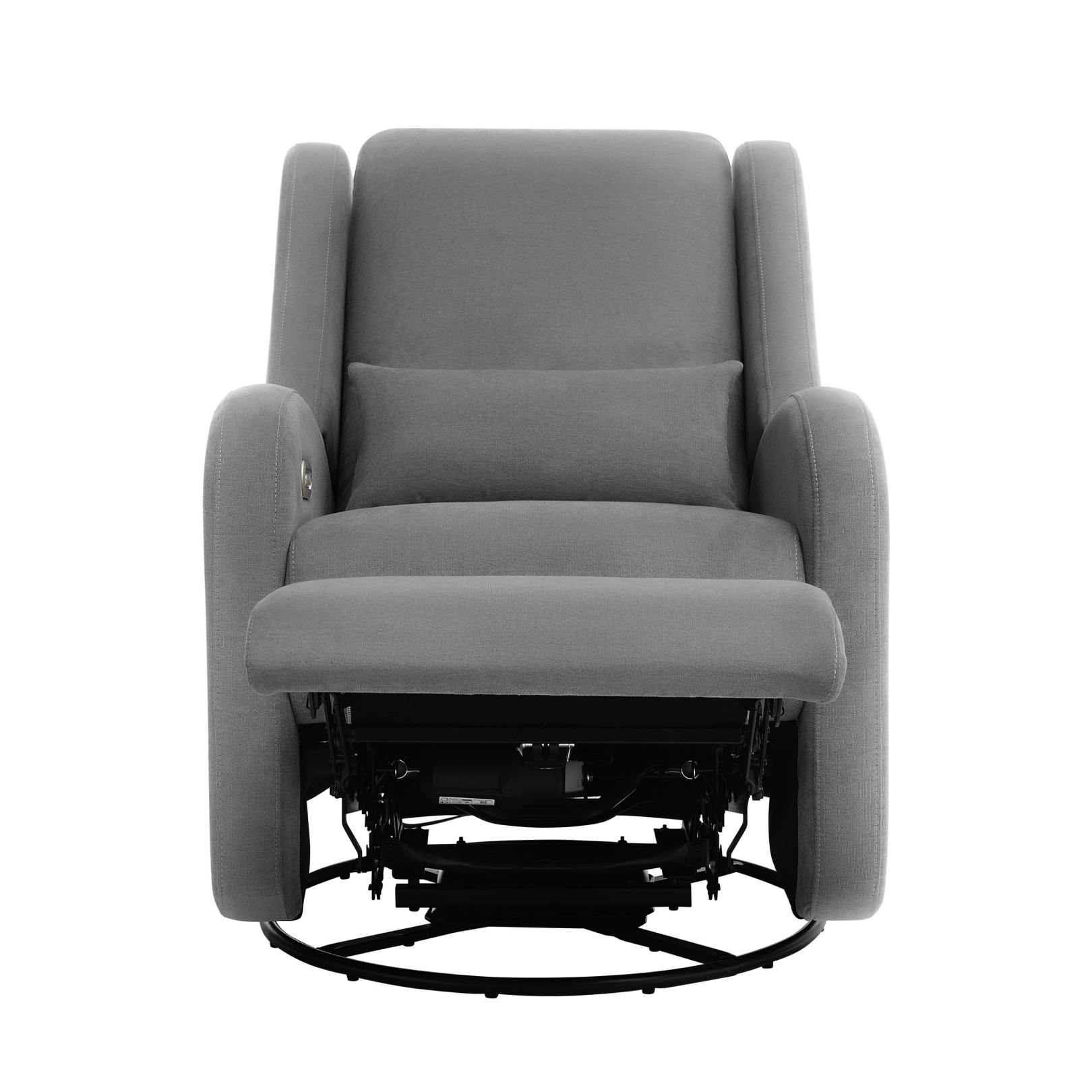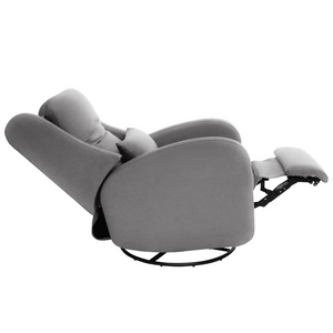 Our most premium glider, now available in a sleek, wingback design. The control panel is subtly hidden in the armrest, powering a smooth recline and glide, 200° swivel, adjustable headrest and power lumbar support. Upholstered in soft, stain-resistant fabric for ultimate comfort and durability.